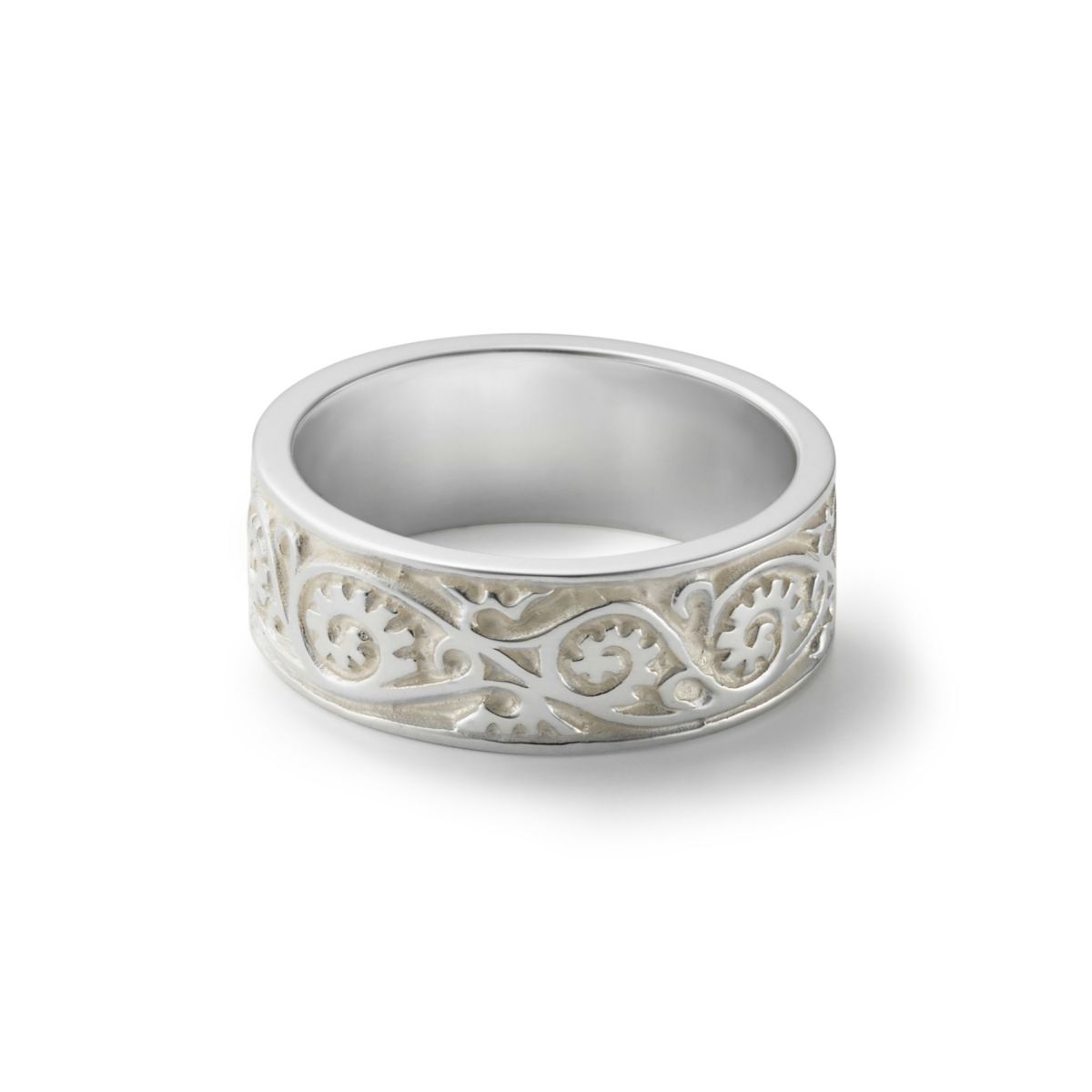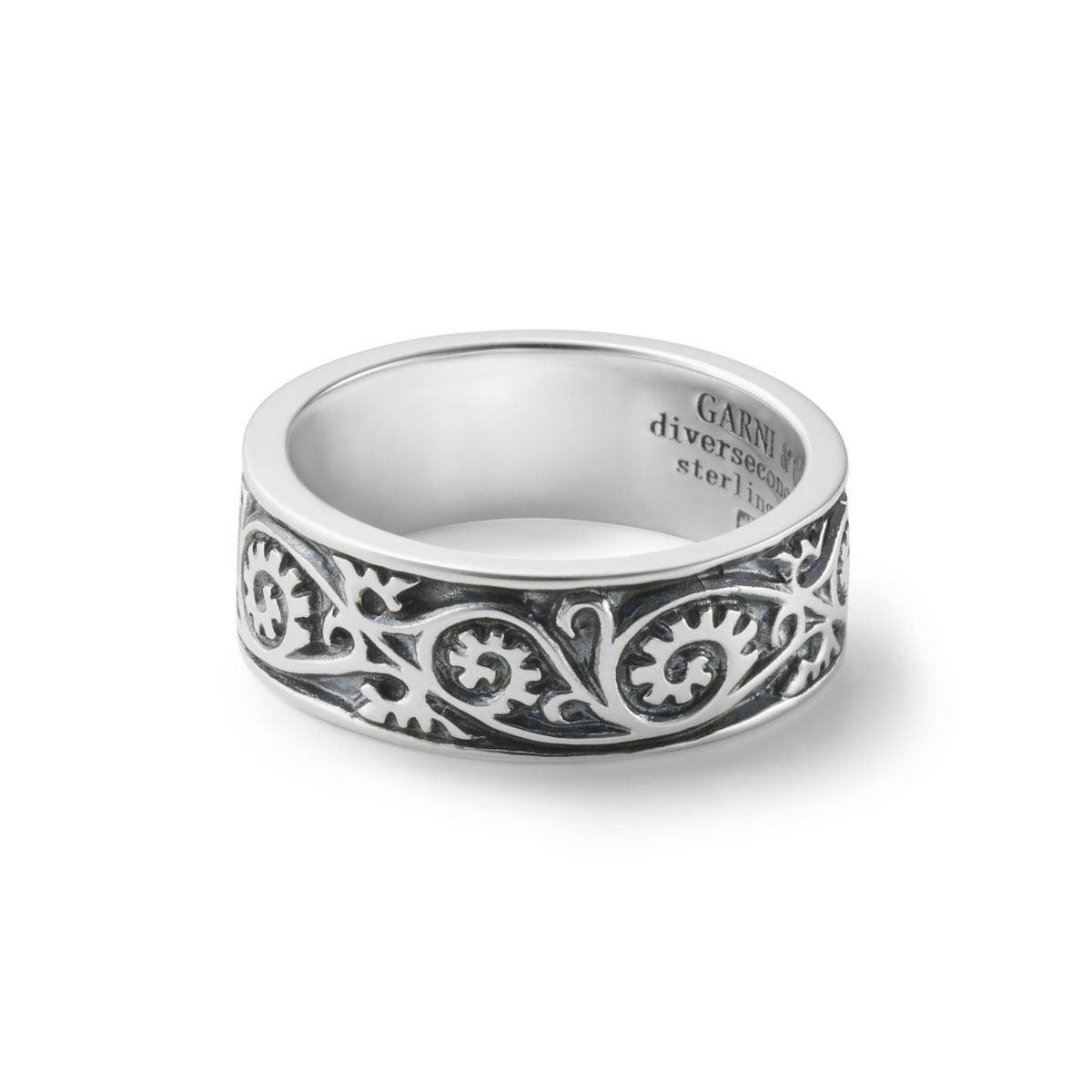 GARNIを代表するオリジナルのツタ模様「バインパターン」を全面に施しました。BLACKはいぶし、WHITEは希硫酸で模様部分の色を表現しています。
