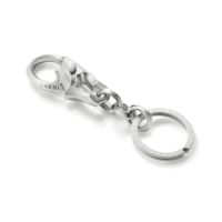 パーツをシンプルなコマでつなぎ合わせたキーチェーン。 お持ちの鍵を付属の二重カンにまとめ、ベルトループなどに引っ掛けてご使用ください。 デザイン性・機能性に富んだオリジナルフックは、着け外しにストレス無くご使用いただけます。 刻印入りの二重カンもポイント。 オリジナルアクセサリーケース付き。