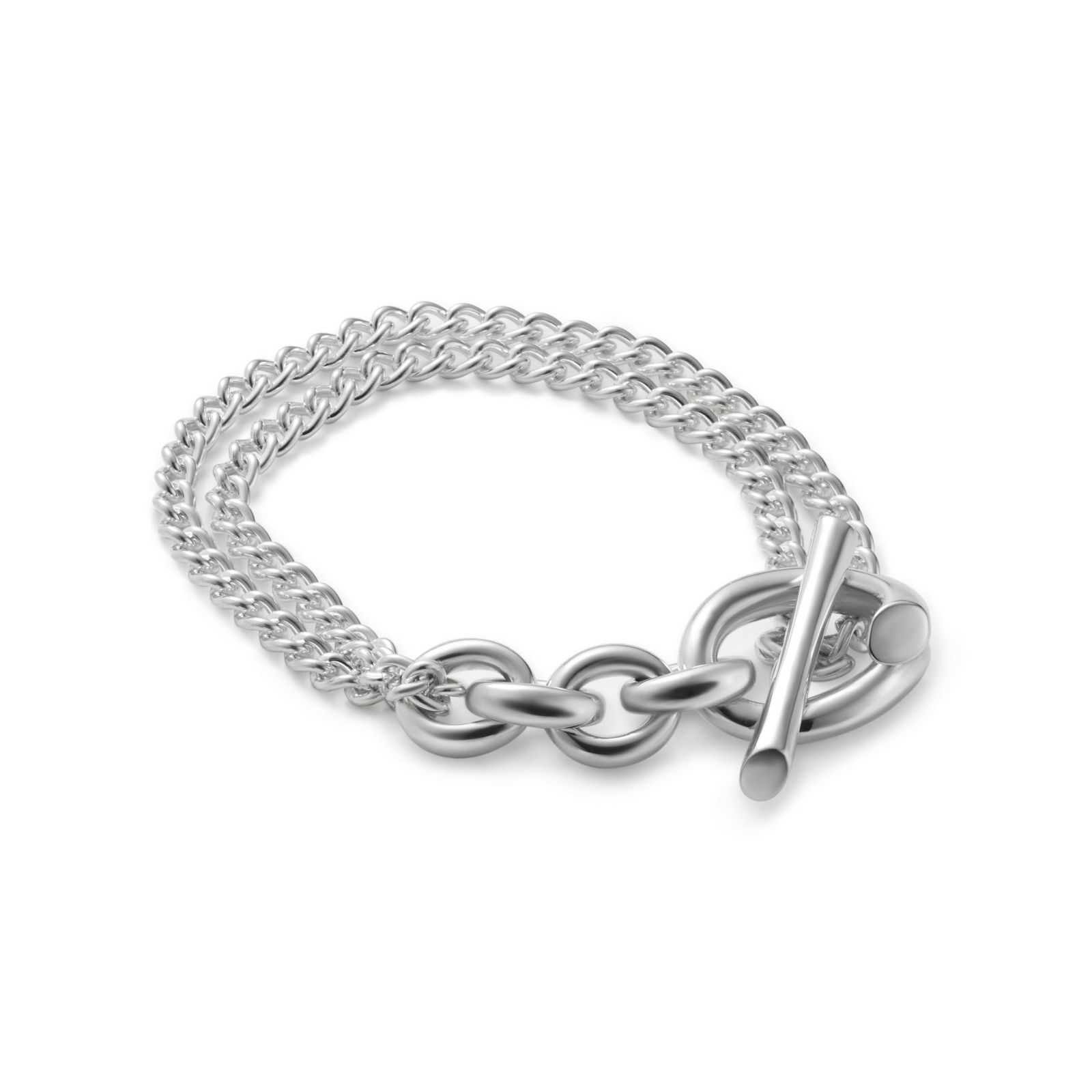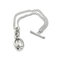 美しい光沢と滑らかなラインが際立つペンダントトップを留め具にしたチェーンブレスレットです。