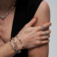 独創的なフォルムの"Clash"デザインが際立つバングルです。 同デザインで幅が異なるLとSの2型展開です。 オリジナルアクセサリーケース付き。