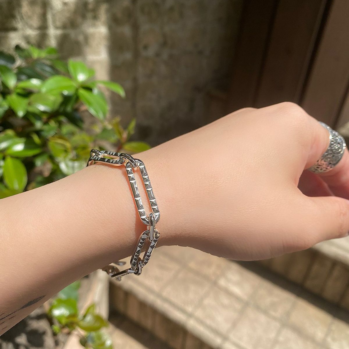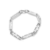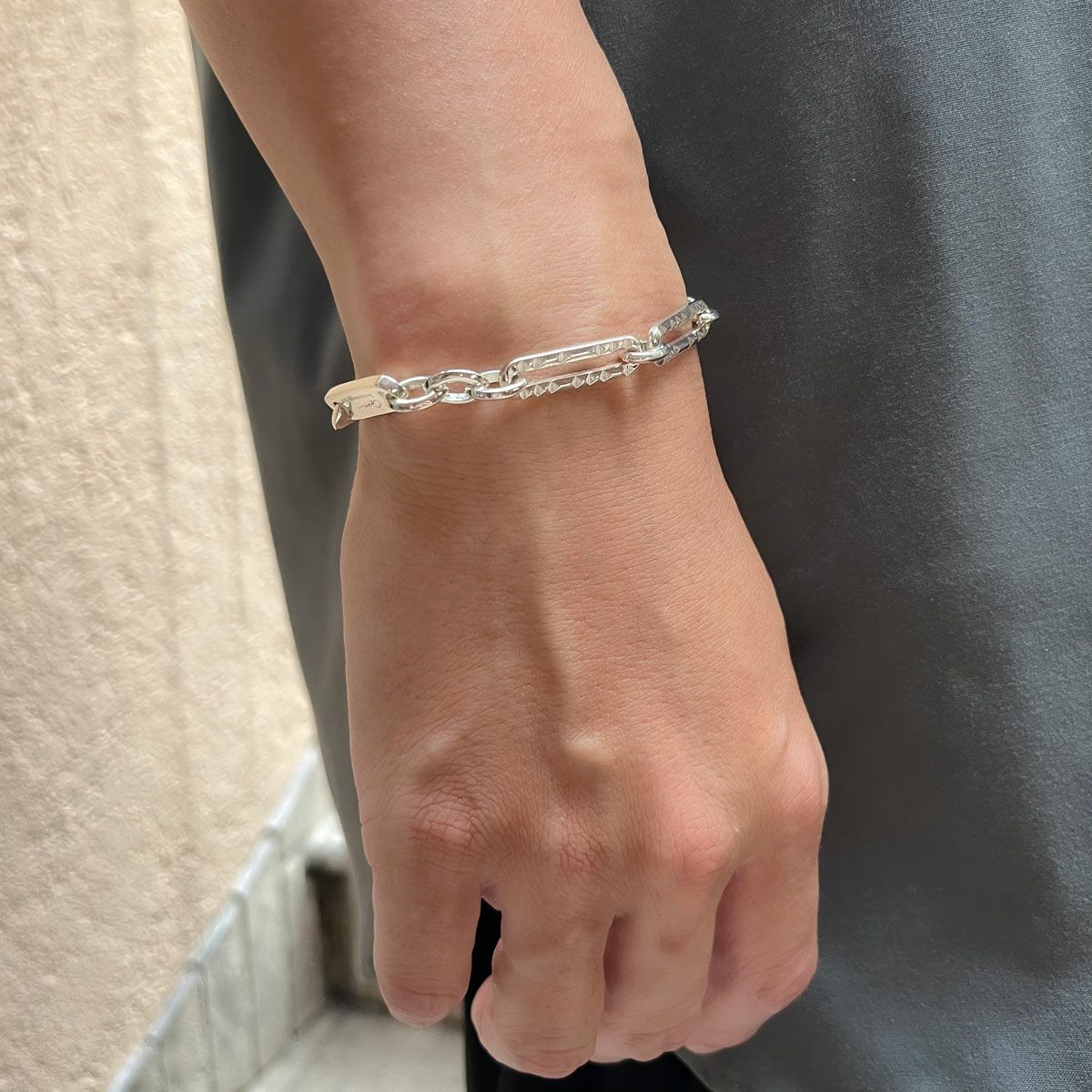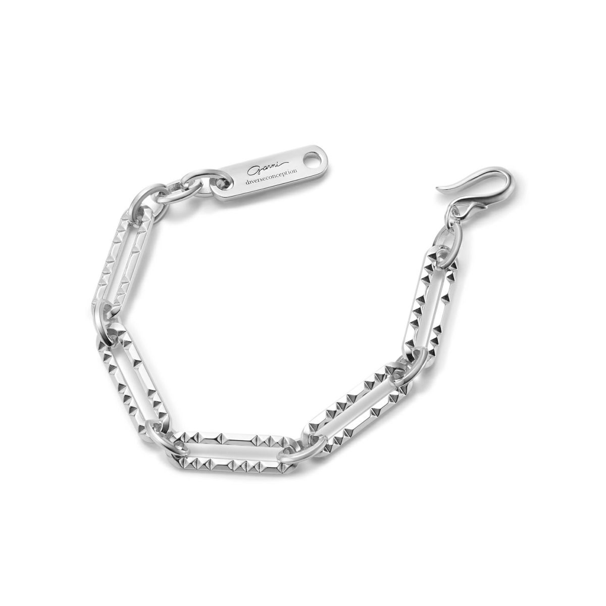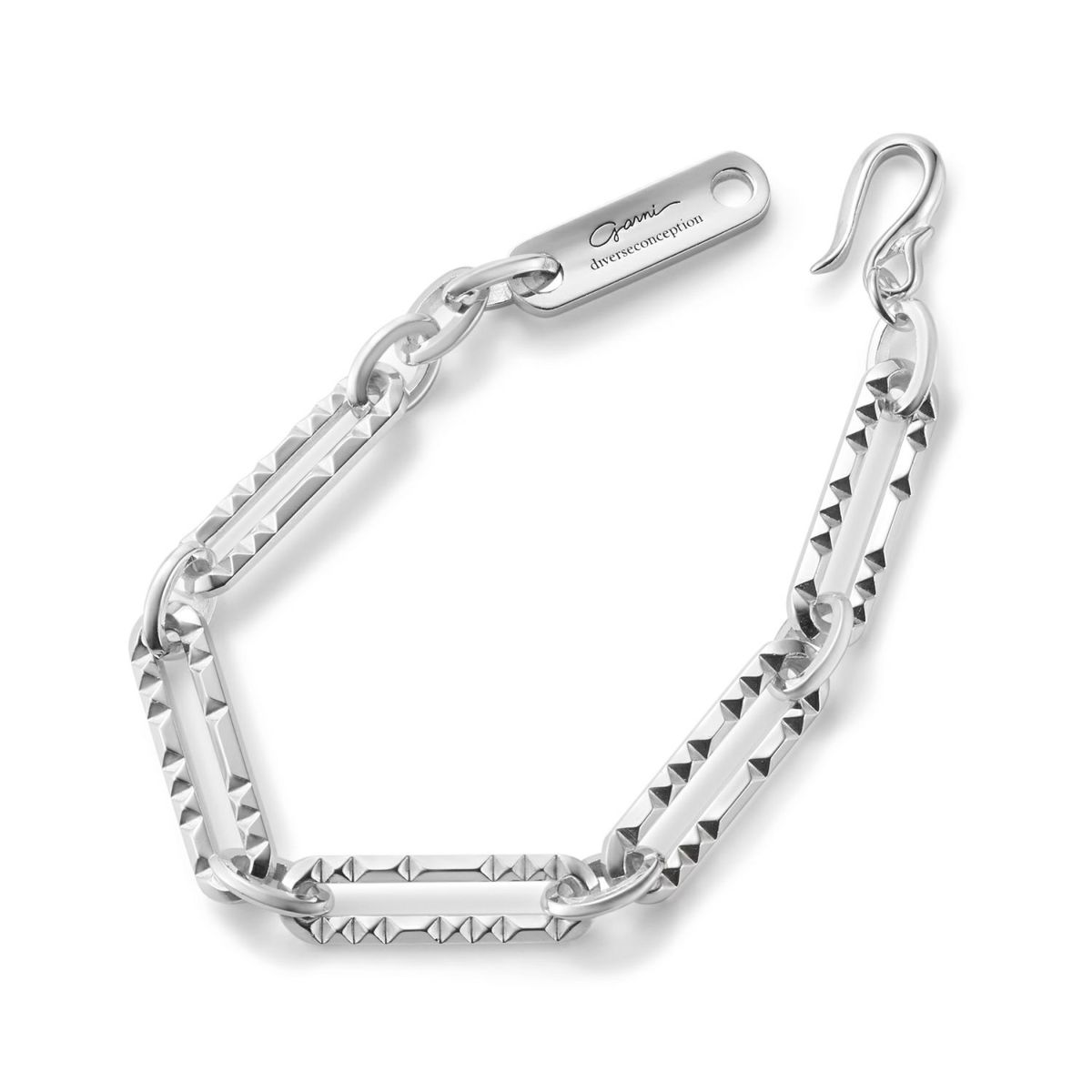 長短サイズの異なる小ぶりなスタッズで表現したオリジナルチェーンの ブレスレットです。 上品さとカジュアルさがマッチした仕上がりです。 オリジナルアクセサリーケース付き。 ギフトラッピング用の有料ギフトボックスはこちら >ACCESSORY BOX 【CLASH】COLLECTION >商品一覧はこちら