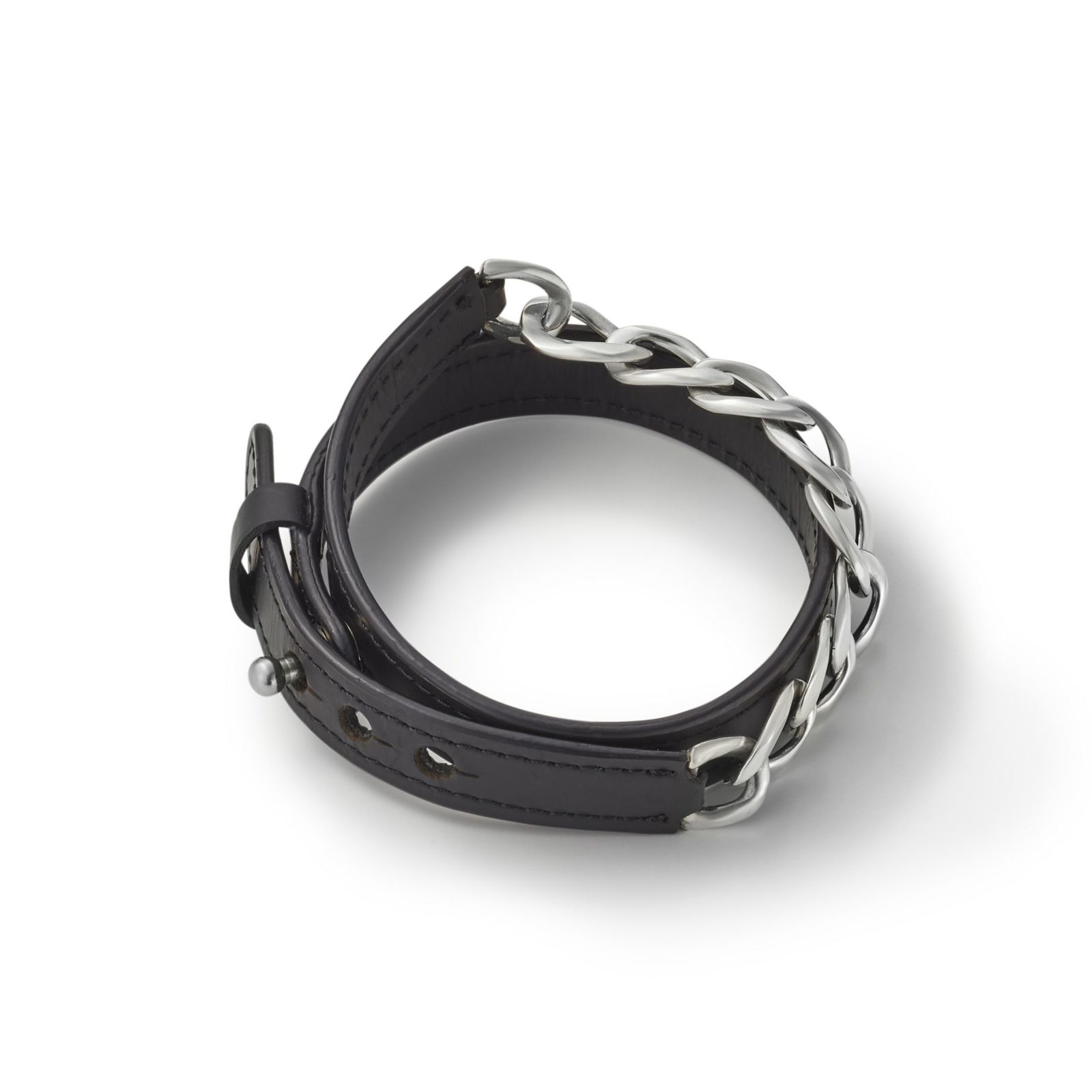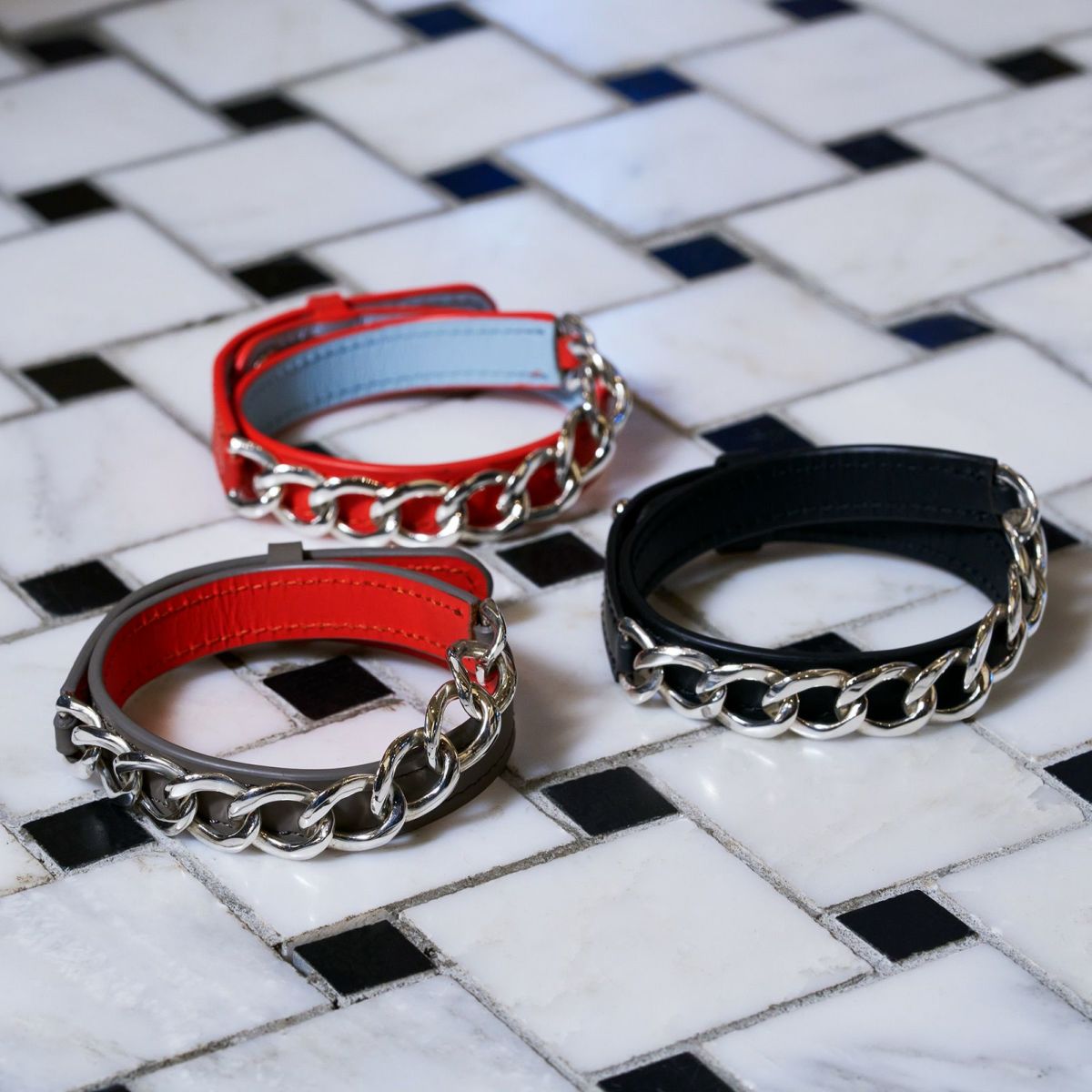 オリジナルで製作したチェーン、Sei-ma Fit Chainと張りのあるマットな質感が特徴のレザーを組み合わせた2連ブレスレットです。