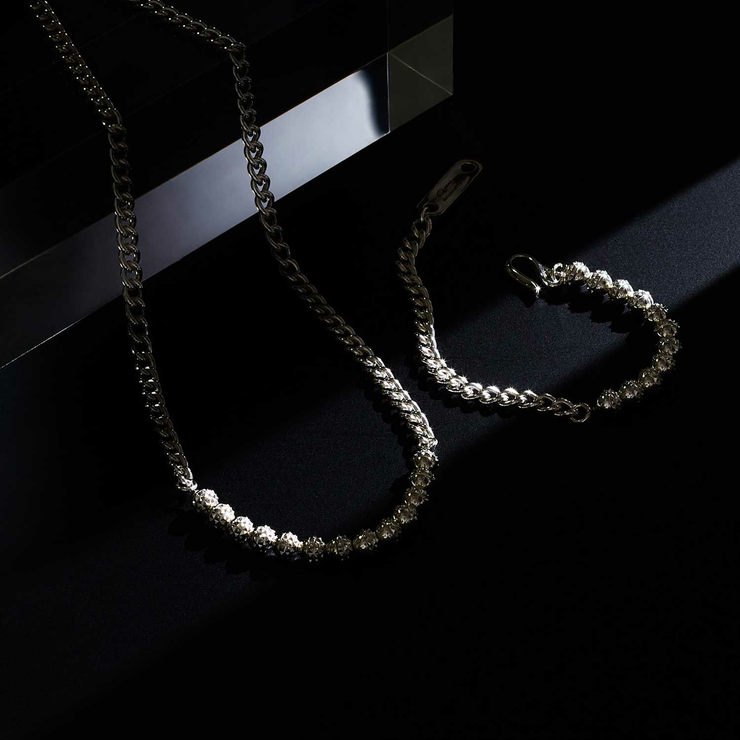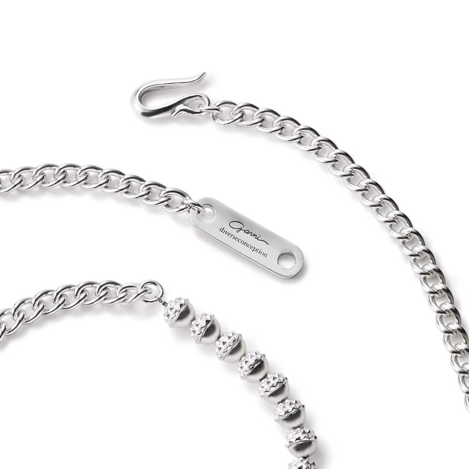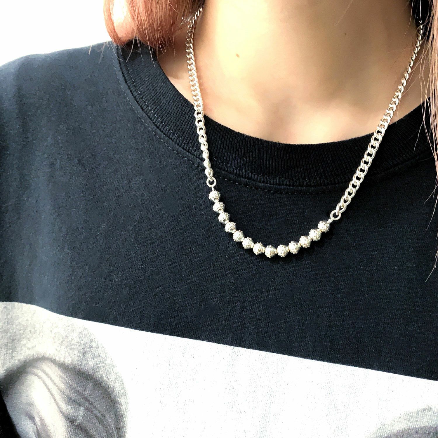 プレーンな半球体と小ぶりなスタッズで表現したオリジナルビーズを一粒と、喜平チェーンをミックスしたネックレスです。