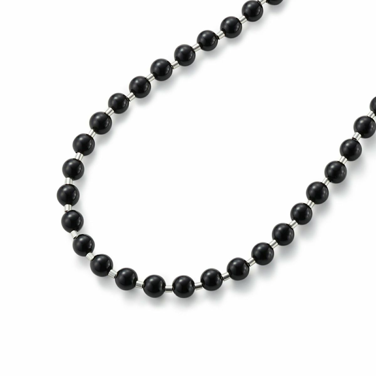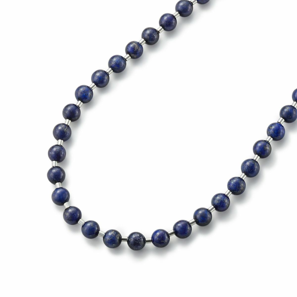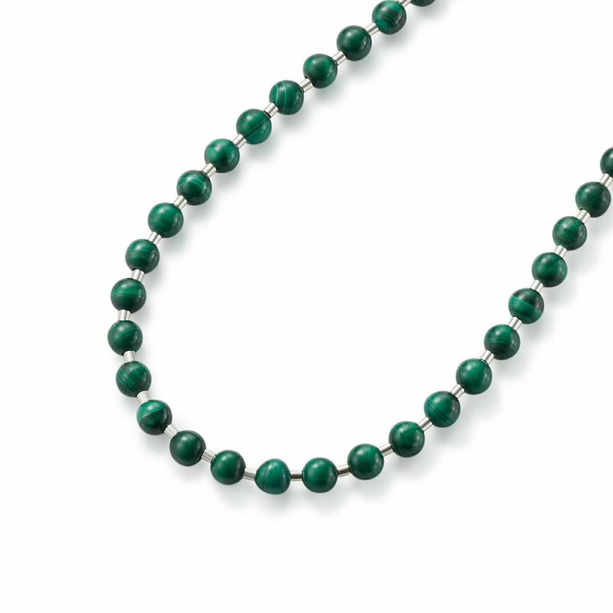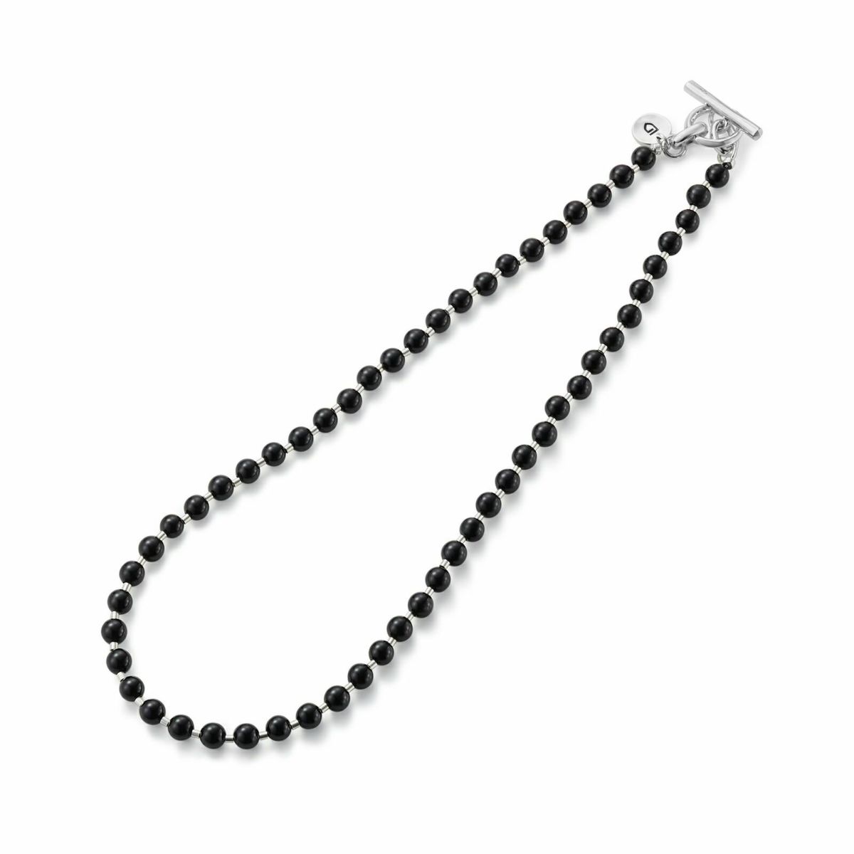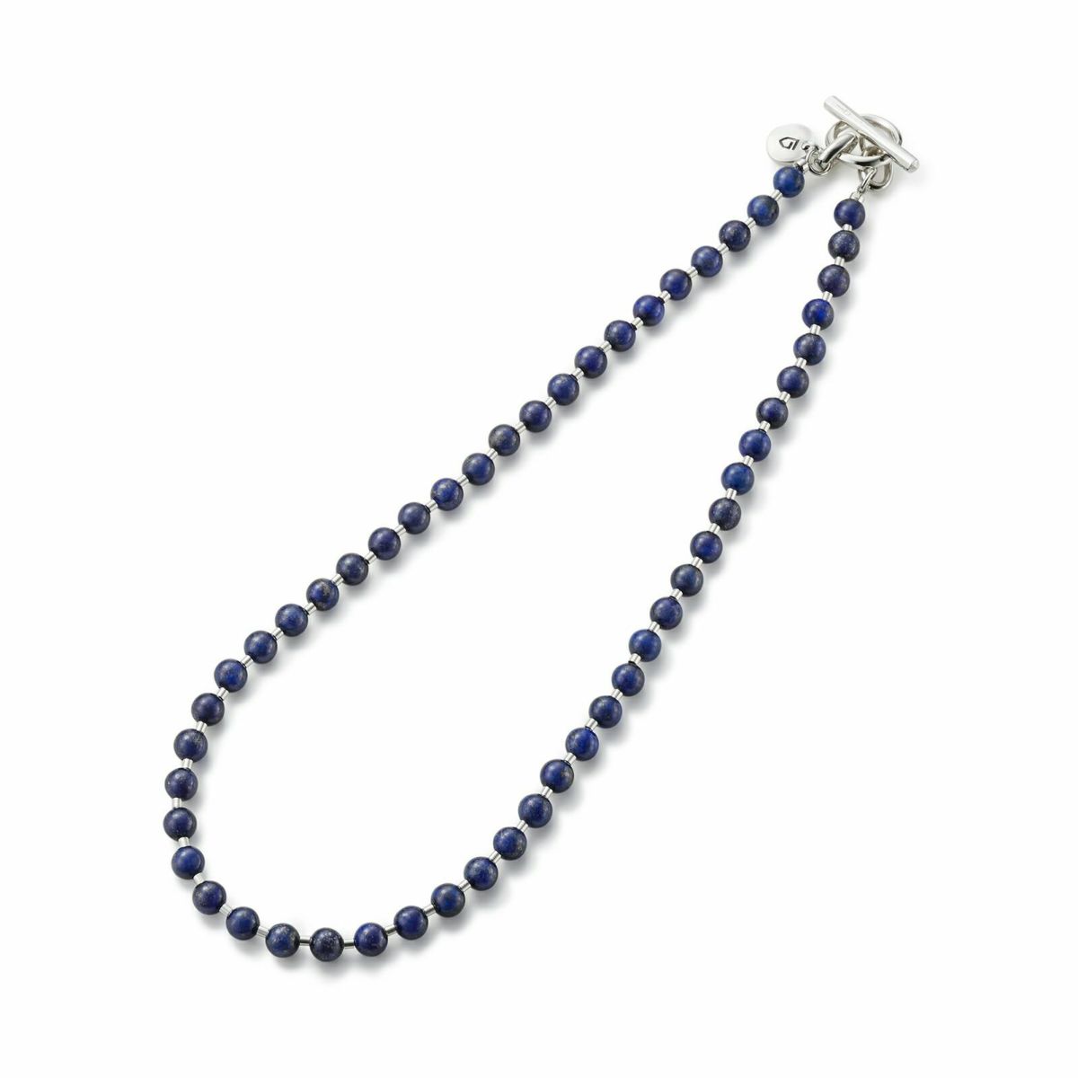 約6mm玉の天然石とパイプ型のシルバーパーツ用いてボールチェーンのようにデザインされたネックレスです。 シンプルなディテールですが、ガルニ独自のカッティングを施してオリジナルで製作したマンテル(留め具)がアクセントになっています。 洋服やジュエリーとカラーを合わせたり、違うカラーを合わせてコントラストを出したりとコーディネートを楽しめるデザインです。 オリジナルアクセサリーケース付き。