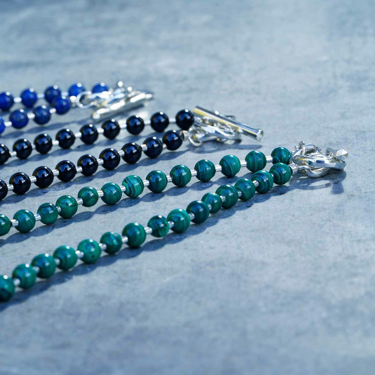 BLACK = オニキス GREEN = マラカイト BLUE = ラピスラズリ 《注意事項》 ・天然石ビーズは一粒一粒大きさや表情に差がありますがご了承下さい。 【DENOVA】COLLECTION >商品一覧はこちら