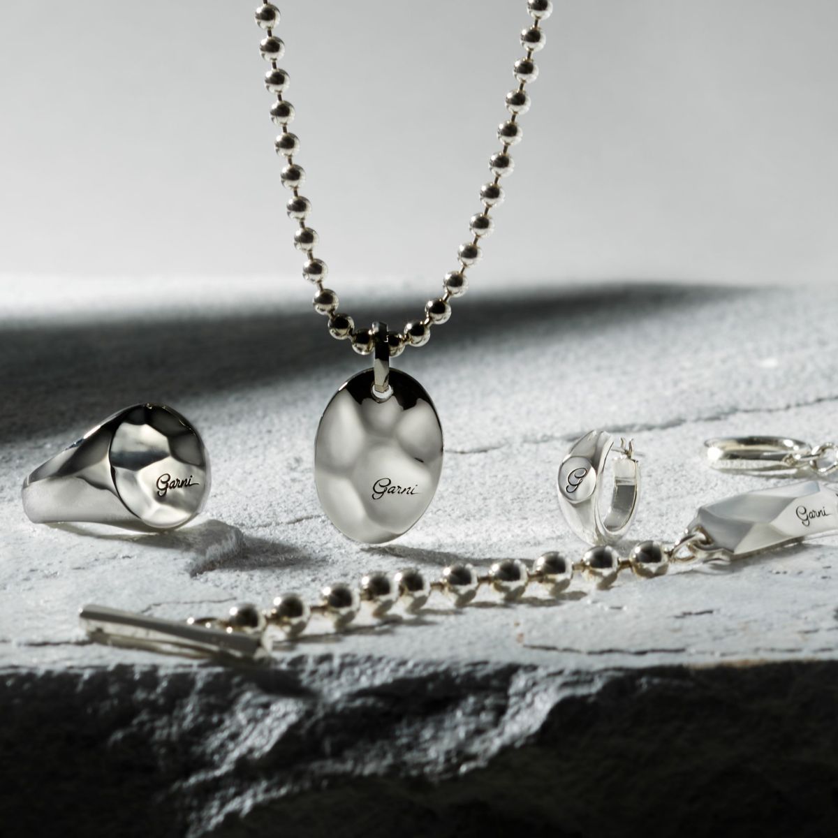 オリジナルフォントの新しいロゴを彫刻しました。シンプルな造形ですがガルニ独自のカッティング技法が使用され、シルバーの輝きを存分に発揮することのできるデザイン、Essential(本質的)です。