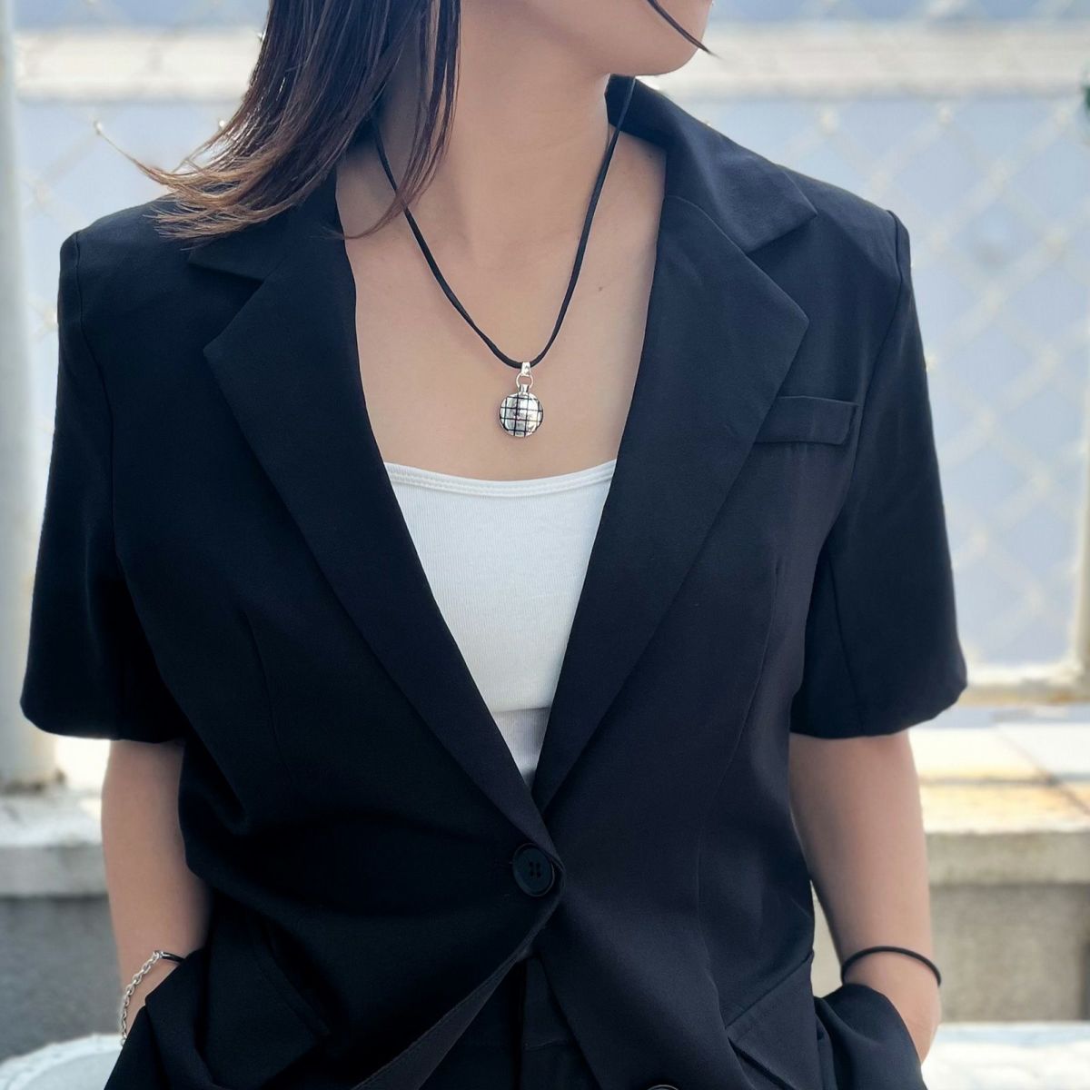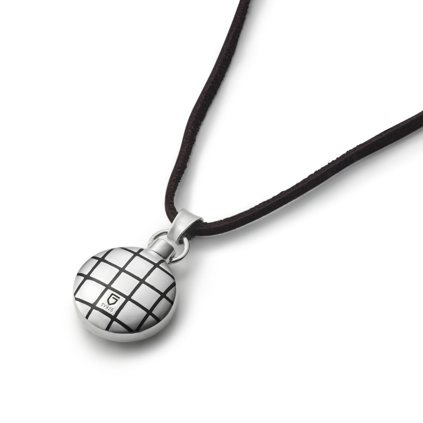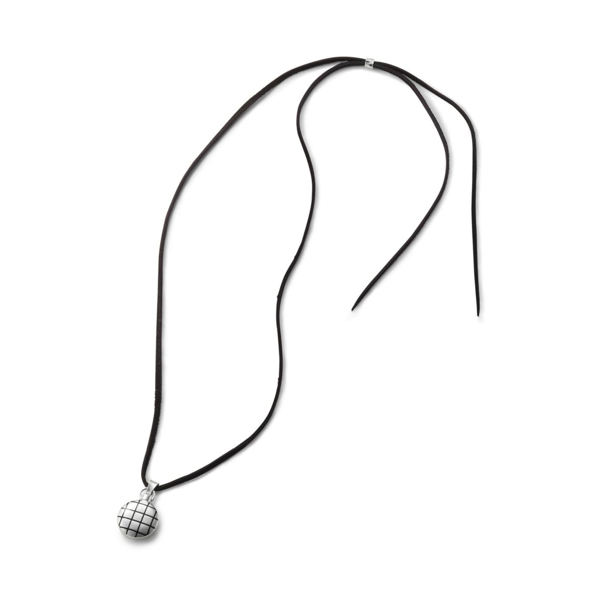ペンダントトップから革紐を取り外し、別売りのChainシリーズを通すことが可能です。(Chain 15 と Chain 16 は除く)