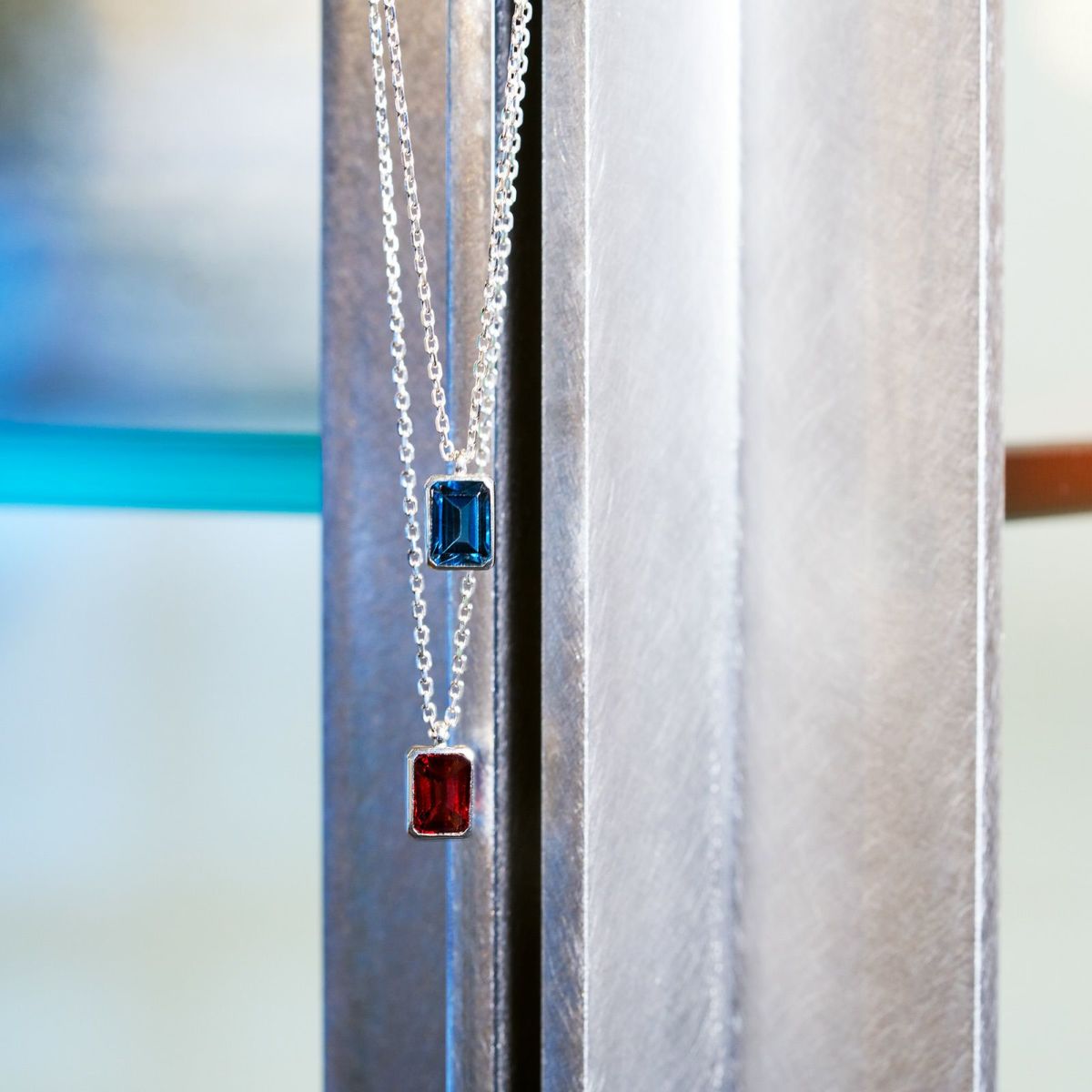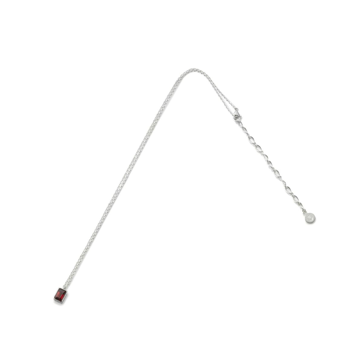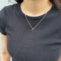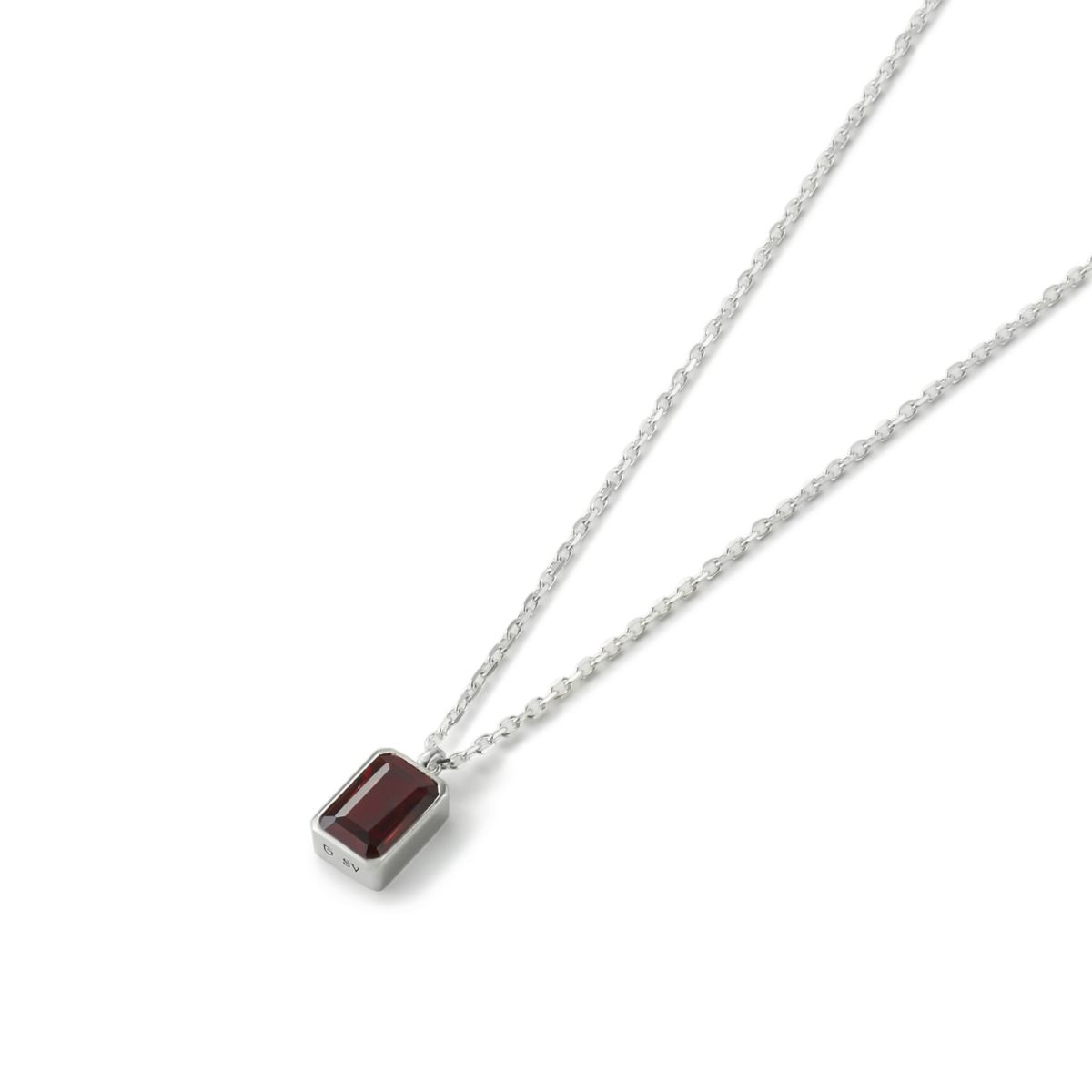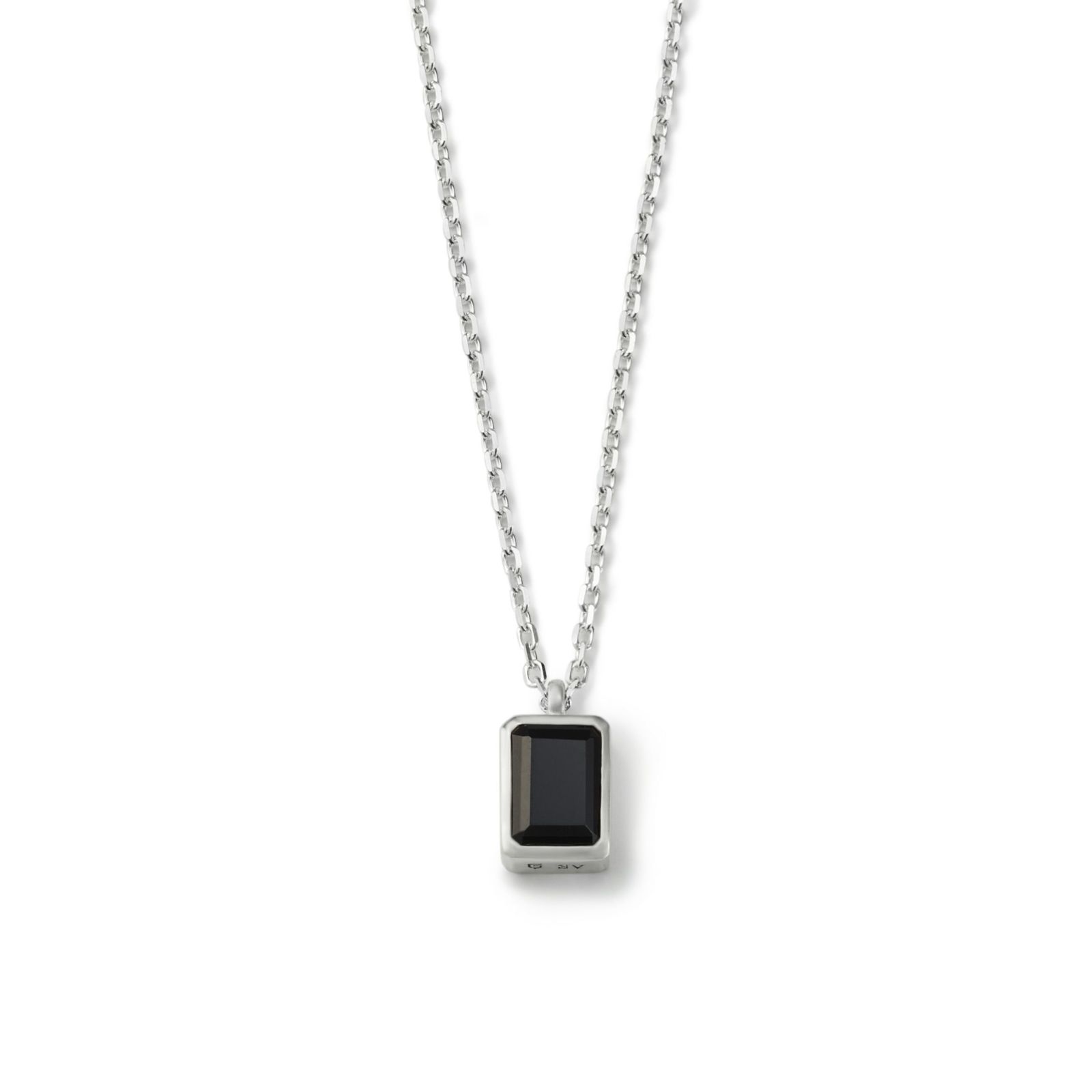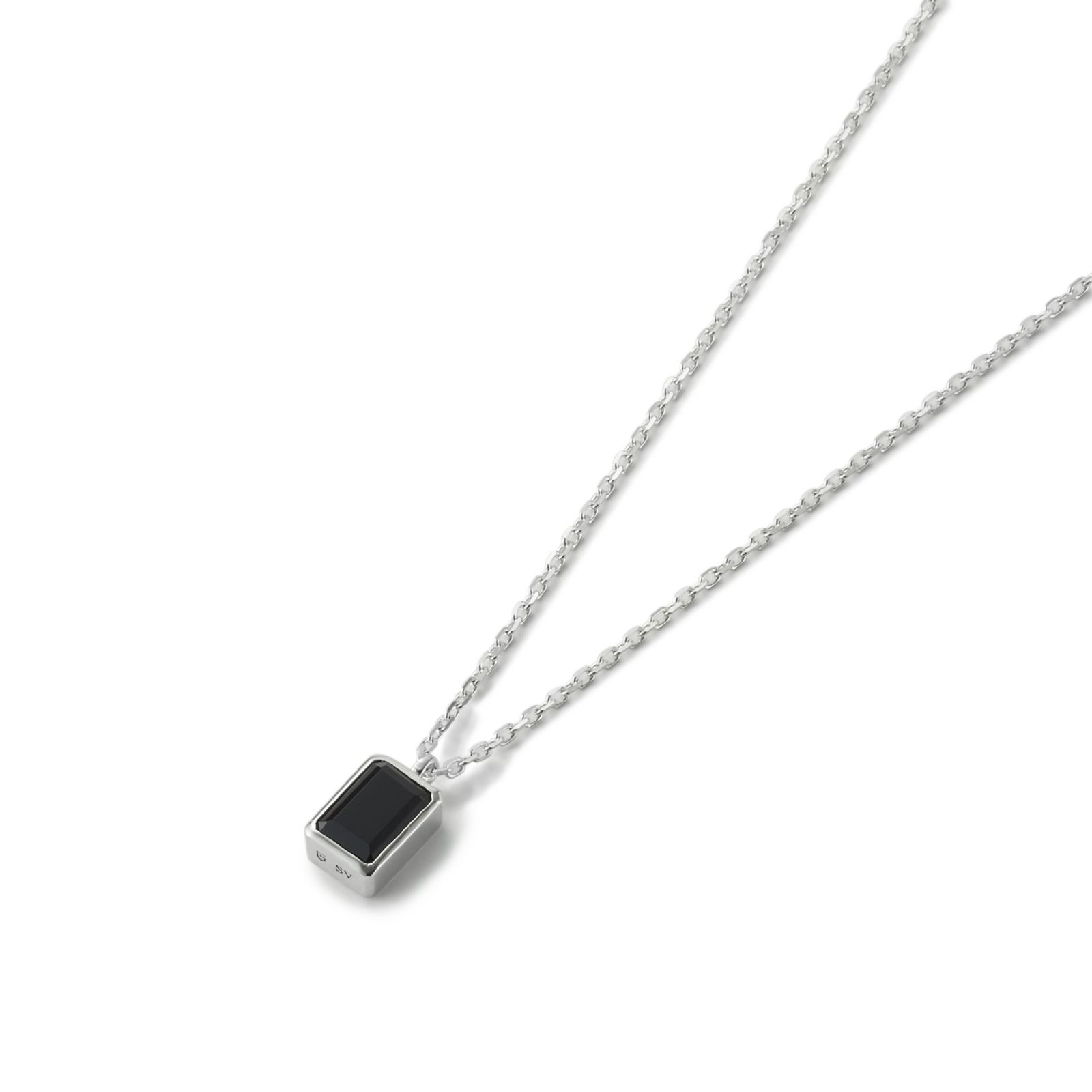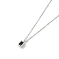 オクタゴンカットの天然石をシルバーパーツで囲み、重厚感のあるシルエットにすることでシンプルながらもモダンな雰囲気です。カットが入ったチェーンを組み合わせています。