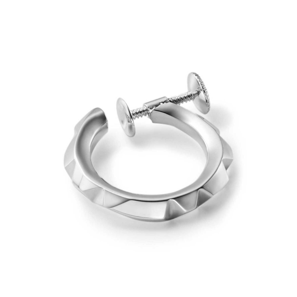独創的なフォルムの"Clash"デザインを施した、ジェンダーレスに着用できるフープイヤリングです。 ピアスホールがない方でもご着用いただけます。 オリジナルアクセサリーケース付き。