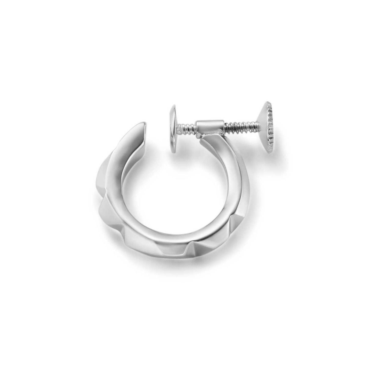 独創的なフォルムの"Clash"デザインを施した、ジェンダーレスに着用できるフープイヤリングです。 ピアスホールがない方でもご着用いただけます。 オリジナルアクセサリーケース付き。