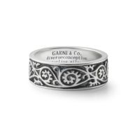 GARNIを代表するオリジナルのツタ模様「バインパターン」を全面に施しました。BLACKはいぶし、WHITEは希硫酸で模様部分の色を表現しています。