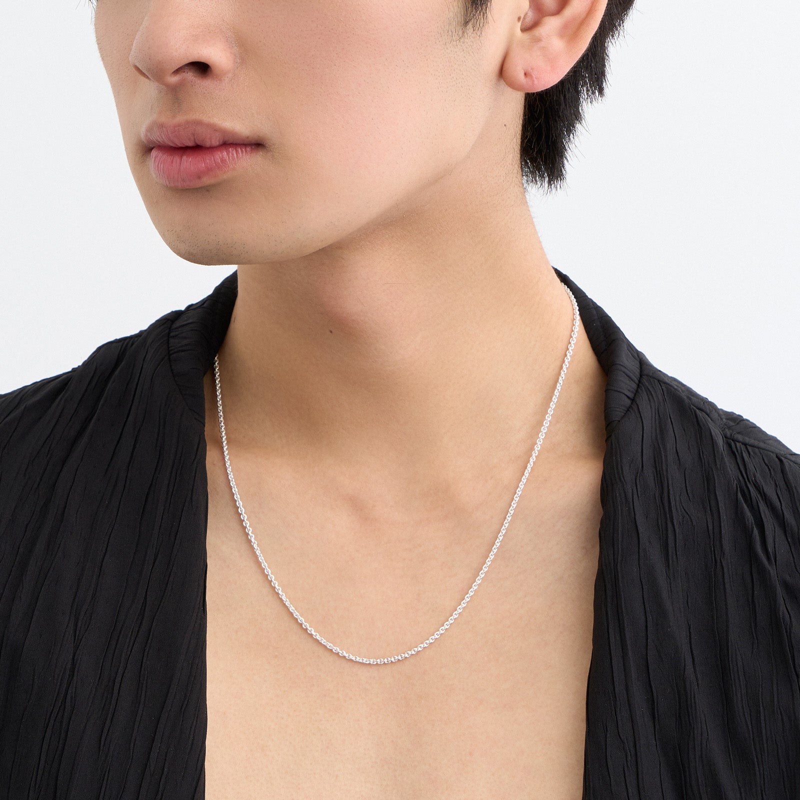 ベーシックなチェーンネックレスです。 チェーンシリーズの中で一番細いシルバーチェーン(S)を使用しています。 オリジナルアクセサリーケース付き。 ■デザイン チェーンの小さなコマがキラキラと反射するので、繊細な輝きがあります。 バチカン(チェーンを通すパーツ)の直径が4.5mm以上のペンダントトップにお使いいただけます。 ■素材 シルバー925 (スターリングシルバー) ■スタイル 単品での着用以外にも、ペンダントトップと組み合わせてコーディネートをお楽しみいただけます。 チェーンはアジャスター付きなので 45cm〜52cm の間でお好みの長さに調節が可能です。 性別や年齢を問わずジェンダーレスでお使いいただけます。 ▼バリエーション ・Chain 06 (チェーンネックレス - L) ・Chain 07 (チェーンネックレス - M) ・Chain 08 (チェーンネックレス - S) チェーンシリーズ >商品一覧はこちら