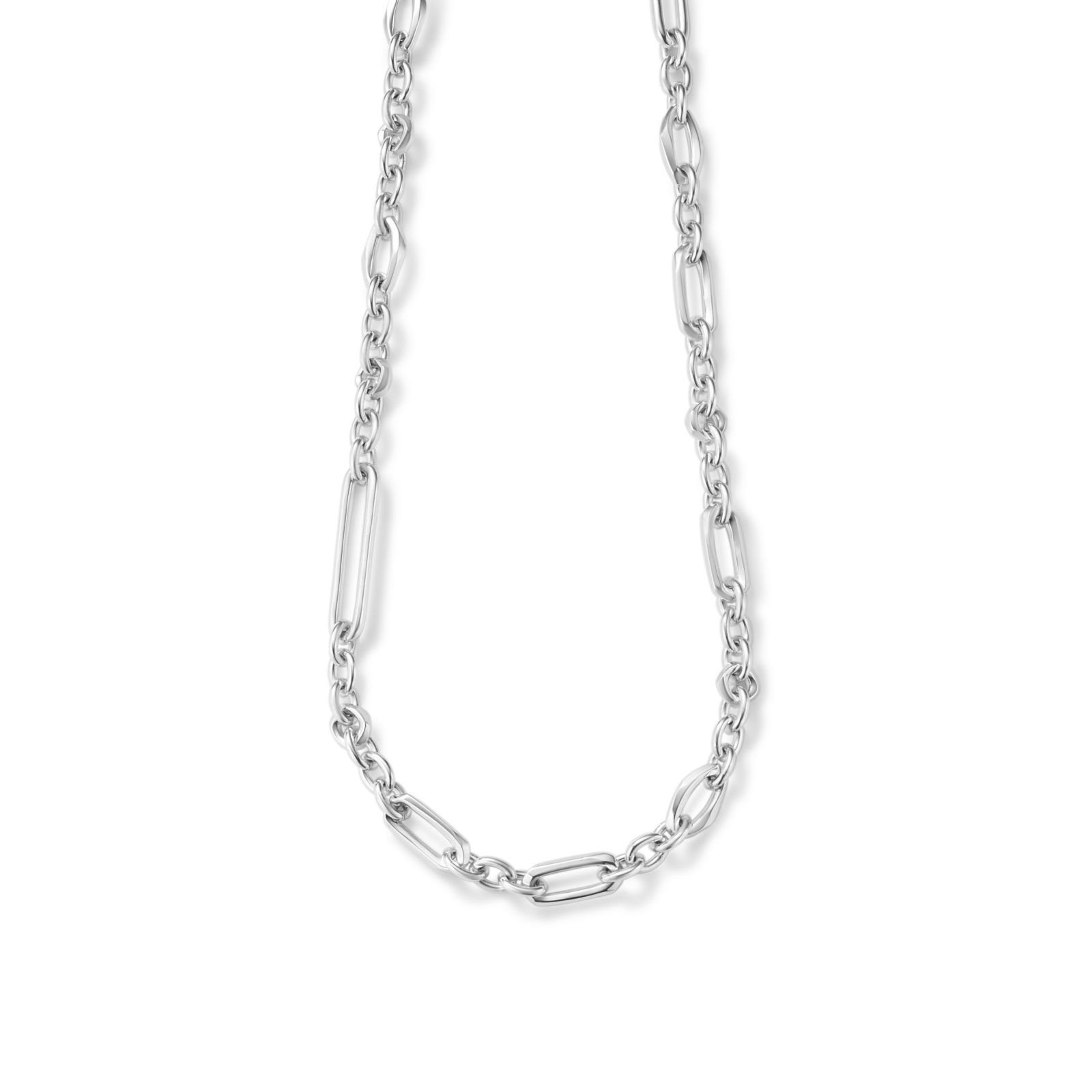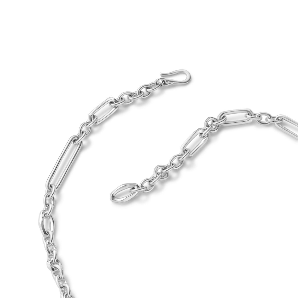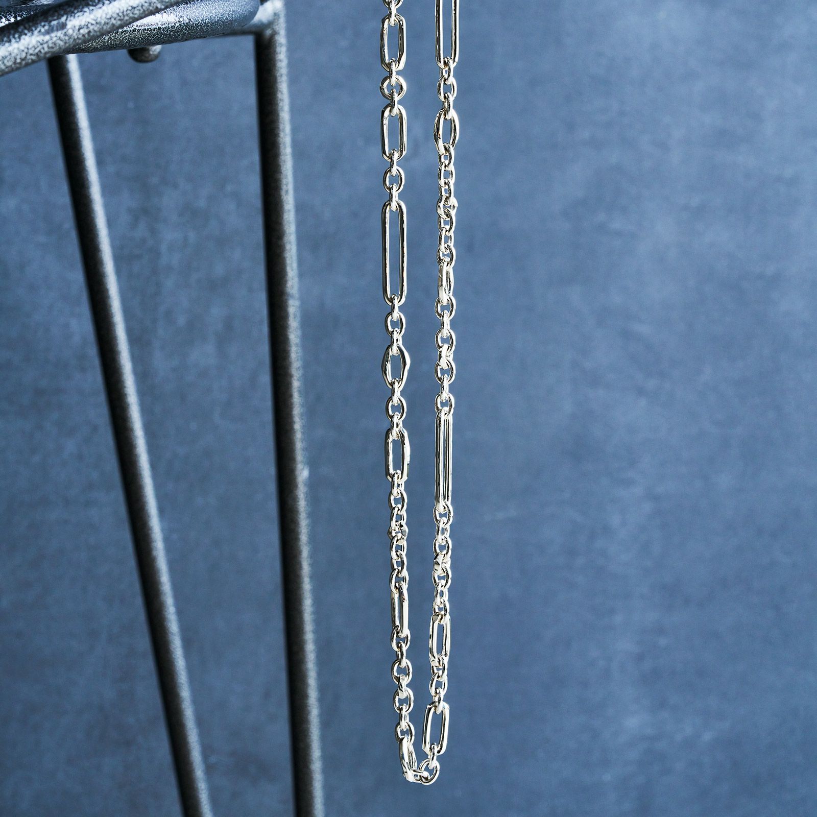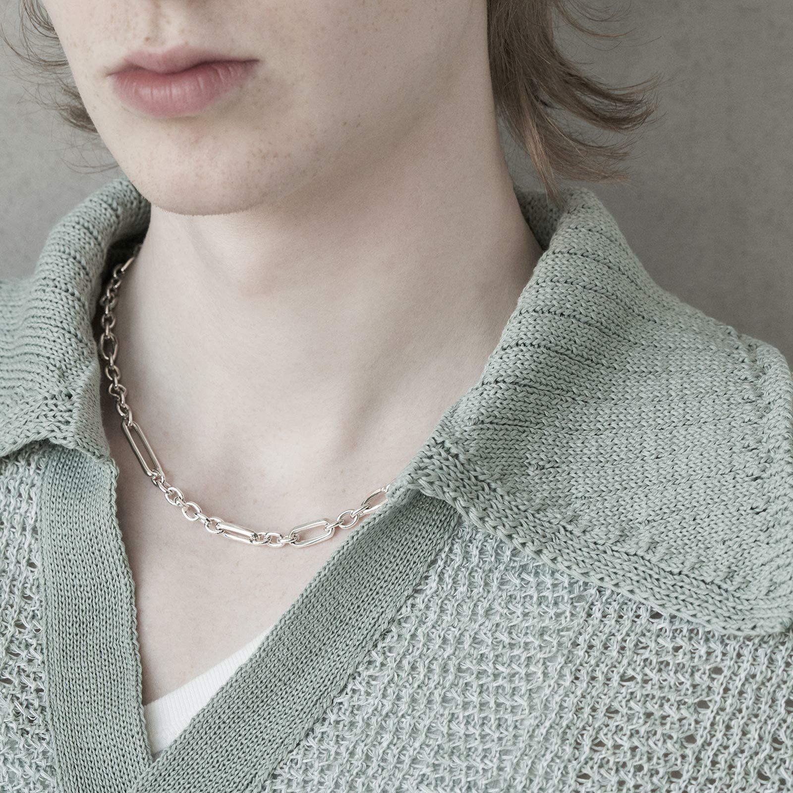 ■デザイン ブランド独自のカッティングを施したパーツとプレーンな形状で作られたパーツを、チェーンとランダムに組み上げて表情にアクセントを加えています。