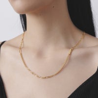 3種類のチェーンをミックスして組み上げたネックレスです。 他デザインのネックレスやカラー違いでの重ね着け、ペンダントトップシリーズのチェーンとしてもオススメです。 フックをチェーンのコマに引っ掛けてお好みの長さに調節が可能です。 オリジナルアクセサリーケース付き。 GOLDはK18 Gold Plated (ゴールドコーティング)を施しています。 《注意事項》 ・汚れなどついた場合は柔らかい布等で優しく拭き取って下さい。 ・シルバー洗浄液・研磨剤を含んだ布(シルバーポリッシュ等)はご使用にならないで下さい。コーティングが剥がれる原因になりますのでご注意下さい。