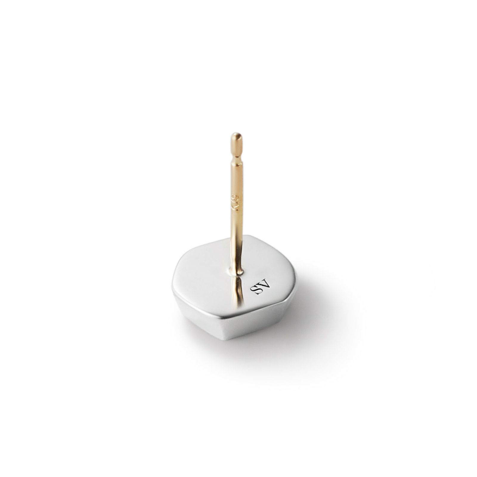 ブランドロゴとコンセプトをスタンプ風に刻印したピアス。 表面の滑らかなタッチと、削り出したようなエッジのあるデザインがポイントです。 オリジナルアクセサリーケース付き。