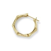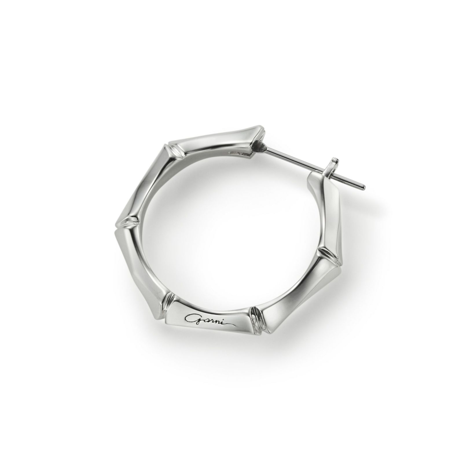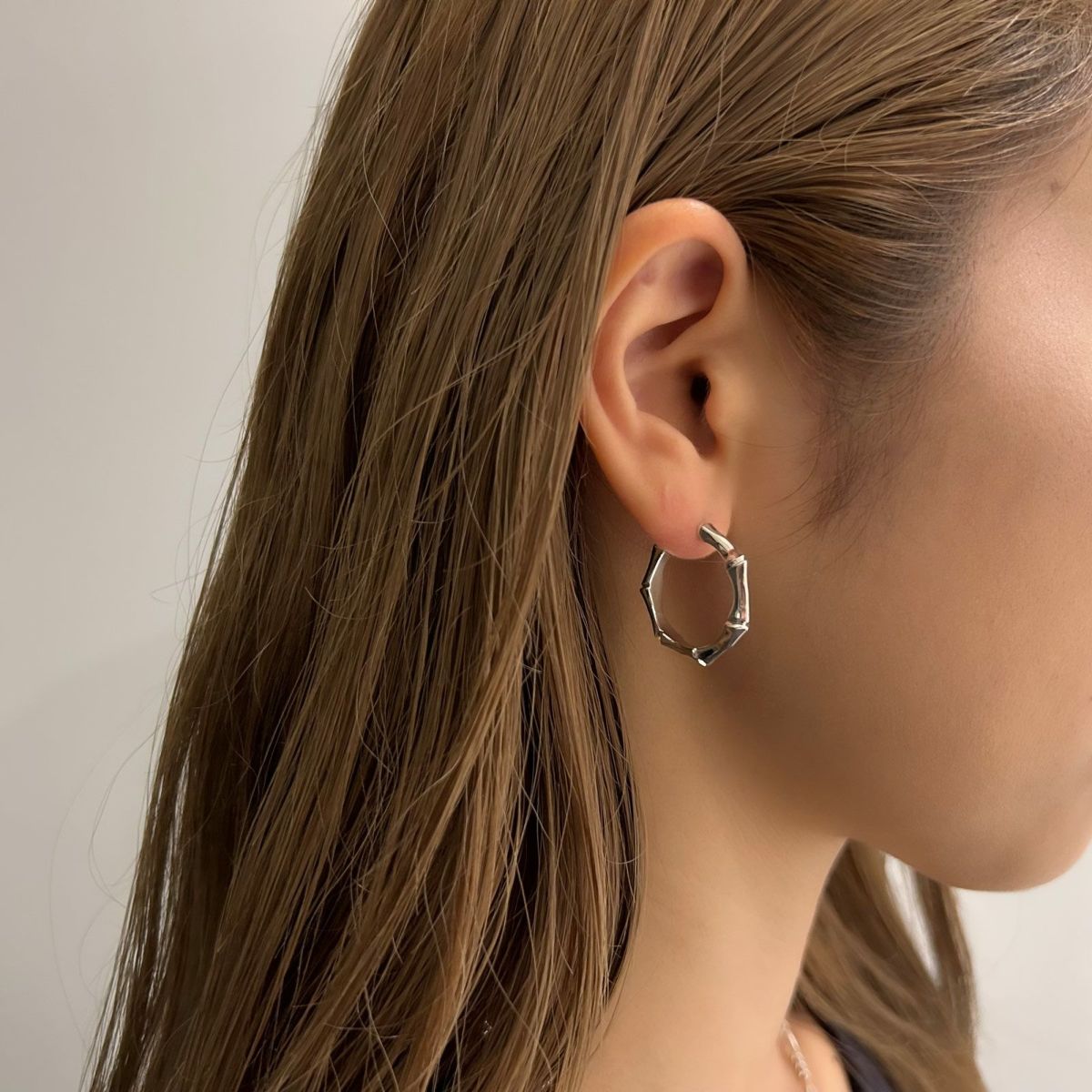 竹の節を表現した「クロッケリーバンブー」のフープピアスです。同デザインのイヤリングもご用意しています。 独特のカッティングとモチーフの形から、上品かつインパクトのある仕上がりになっています。 オリジナルアクセサリーケース付き。
