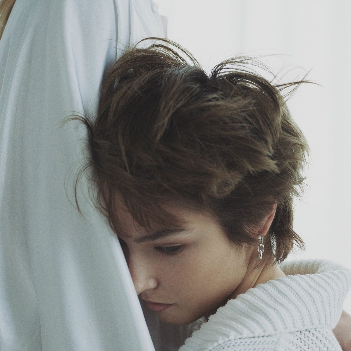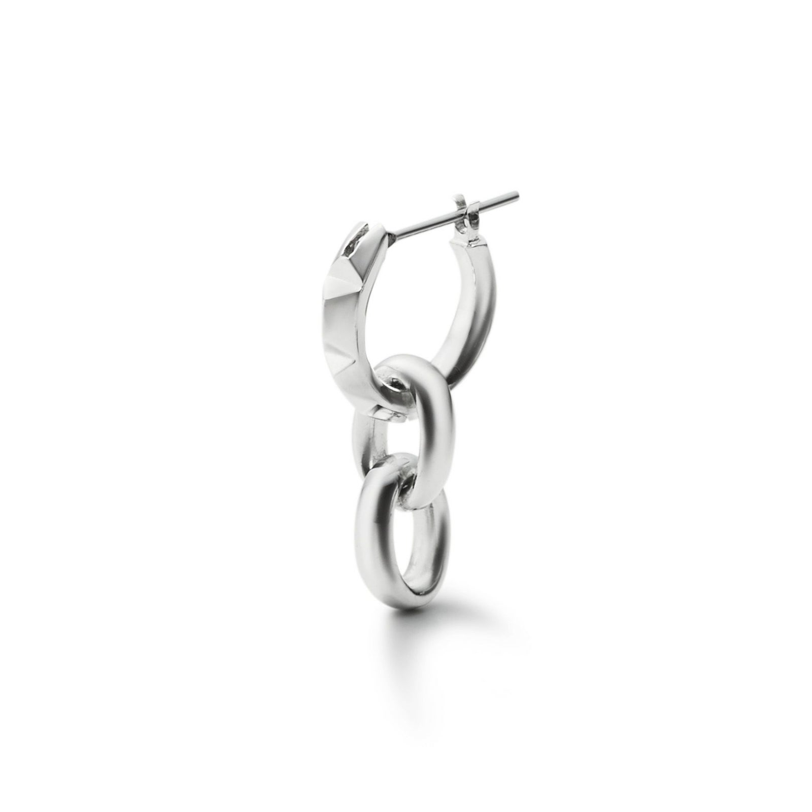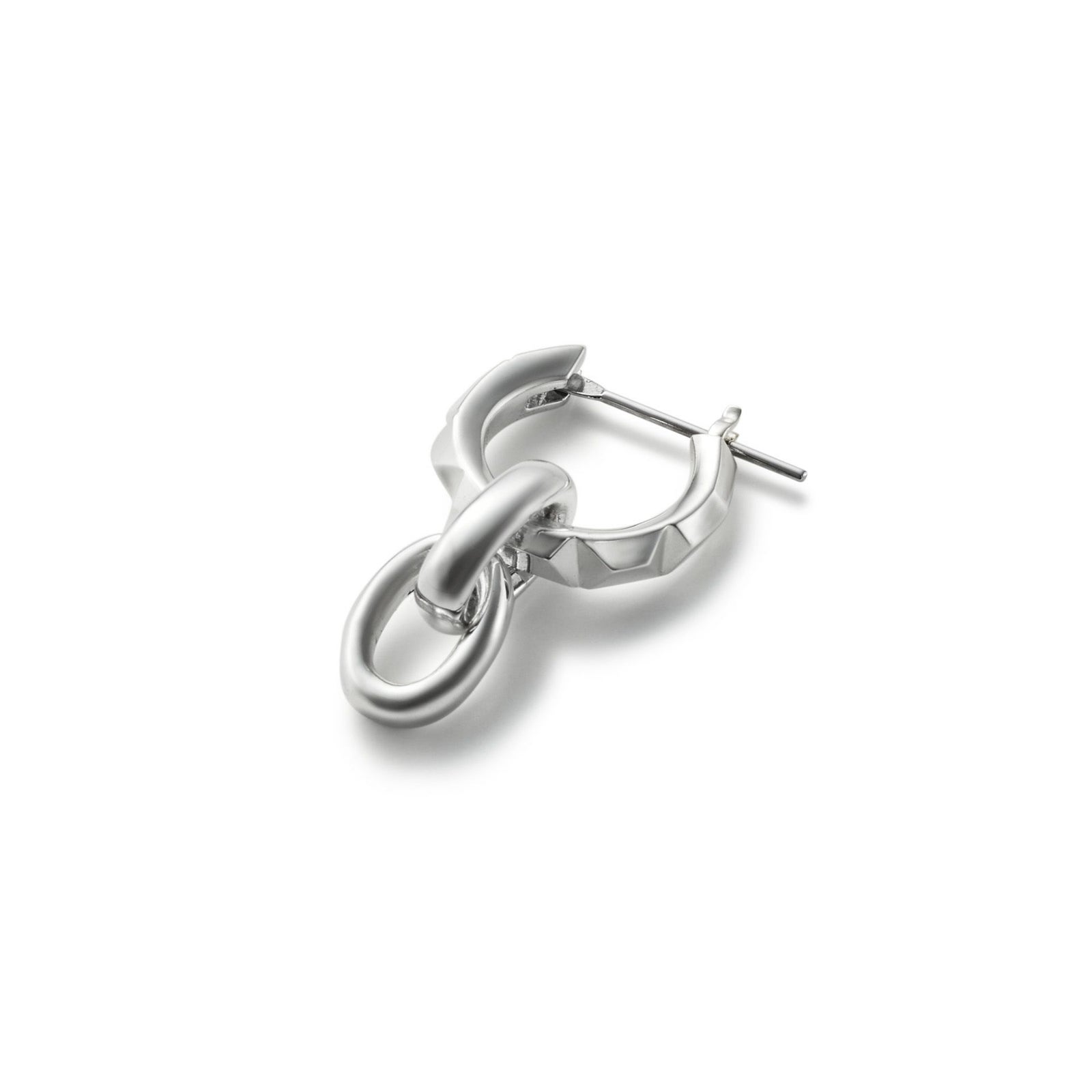 こちらはチェーンモチーフのトップと"Clash"デザインを施したフープピアスとを組み合わせたピアスです。