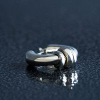 ■デザイン ブランド独自のカッティングを施したパーツとプレーンな形状で作られたパーツをフープピアスに通して、さりげないアクセントを加えています。 リングパーツは本体から外れない形状になっています。