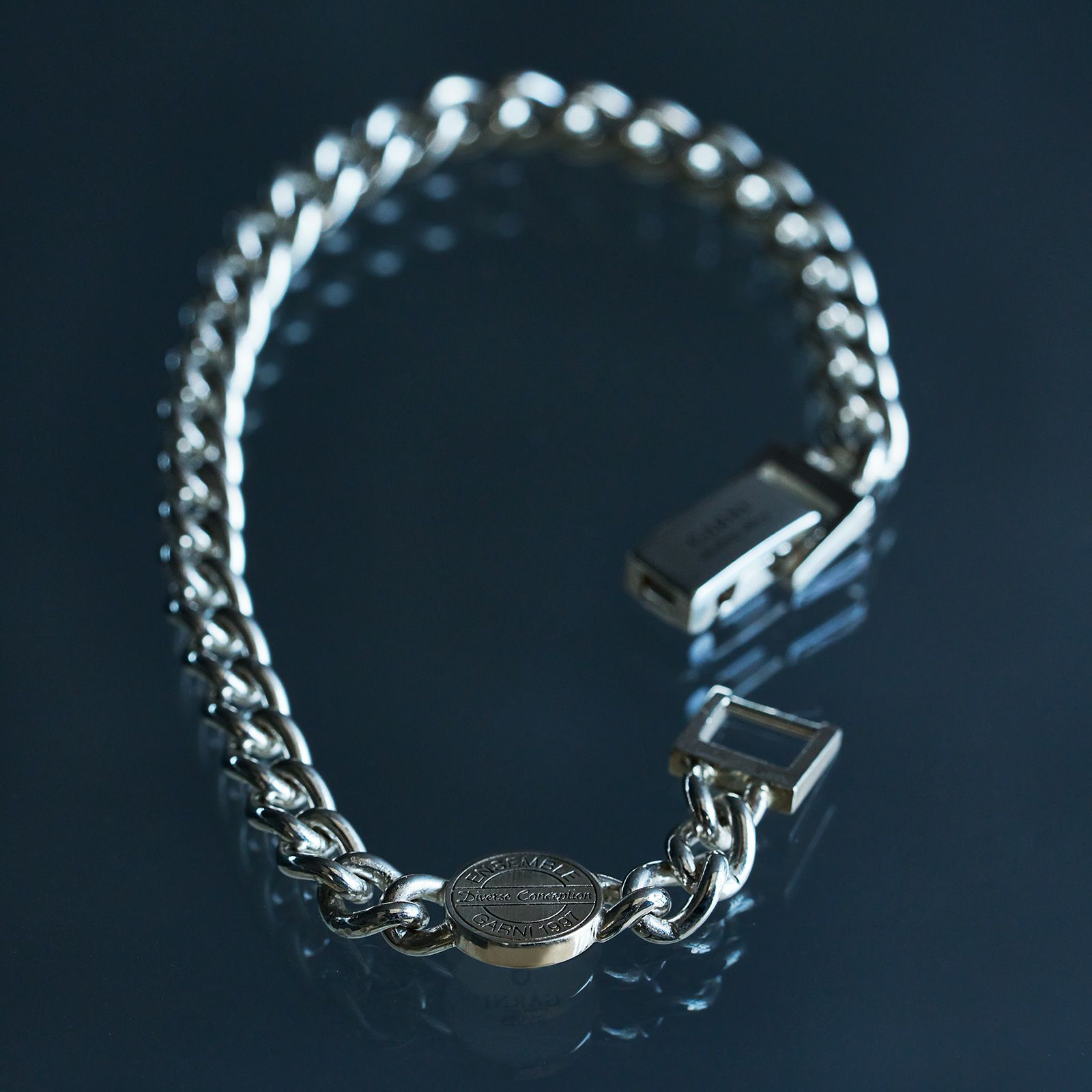 コイン調にデザインしたモチーフをあしらったチェーンブレスレットです。
