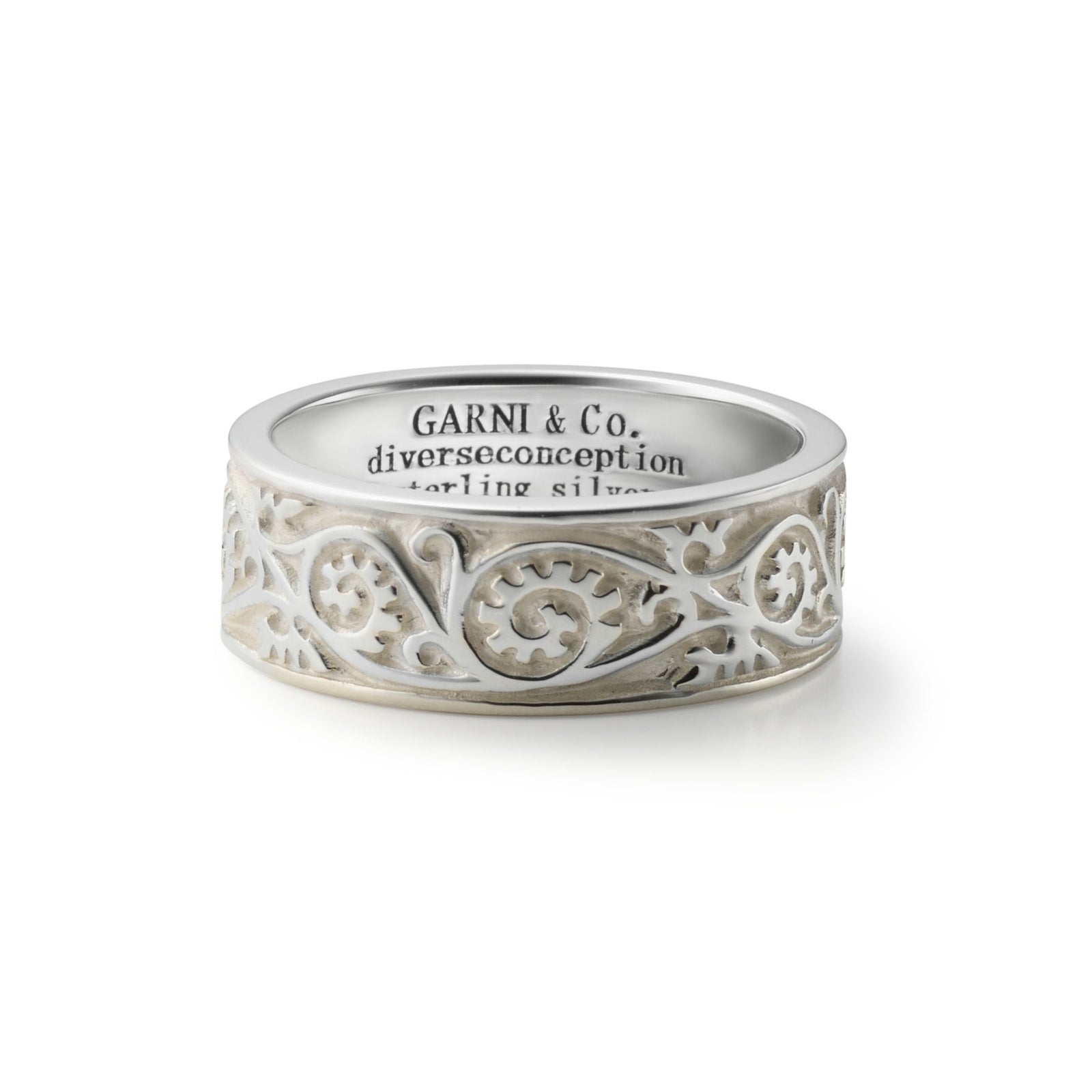 GARNIを代表するオリジナルのツタ模様「バインパターン」を全面に施しました。WHITEは希硫酸で模様部分の色を表現しています。