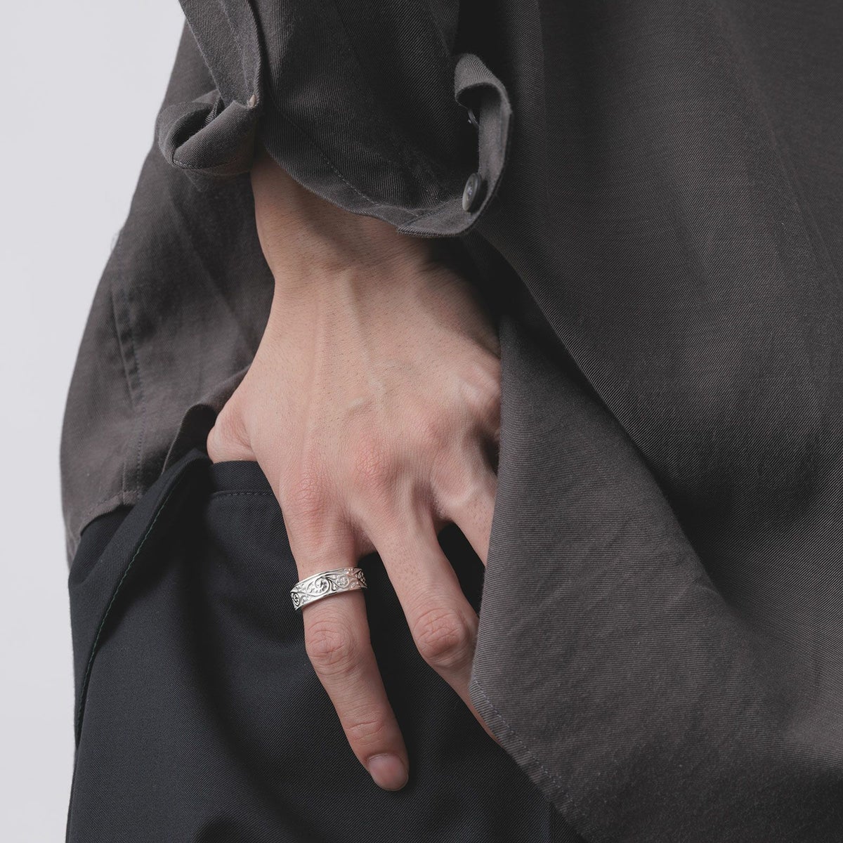 リング表面に「バインパターン」を施した平打ちリングです。