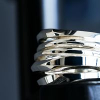 5連に重ねたデザインが特徴的なリングです。