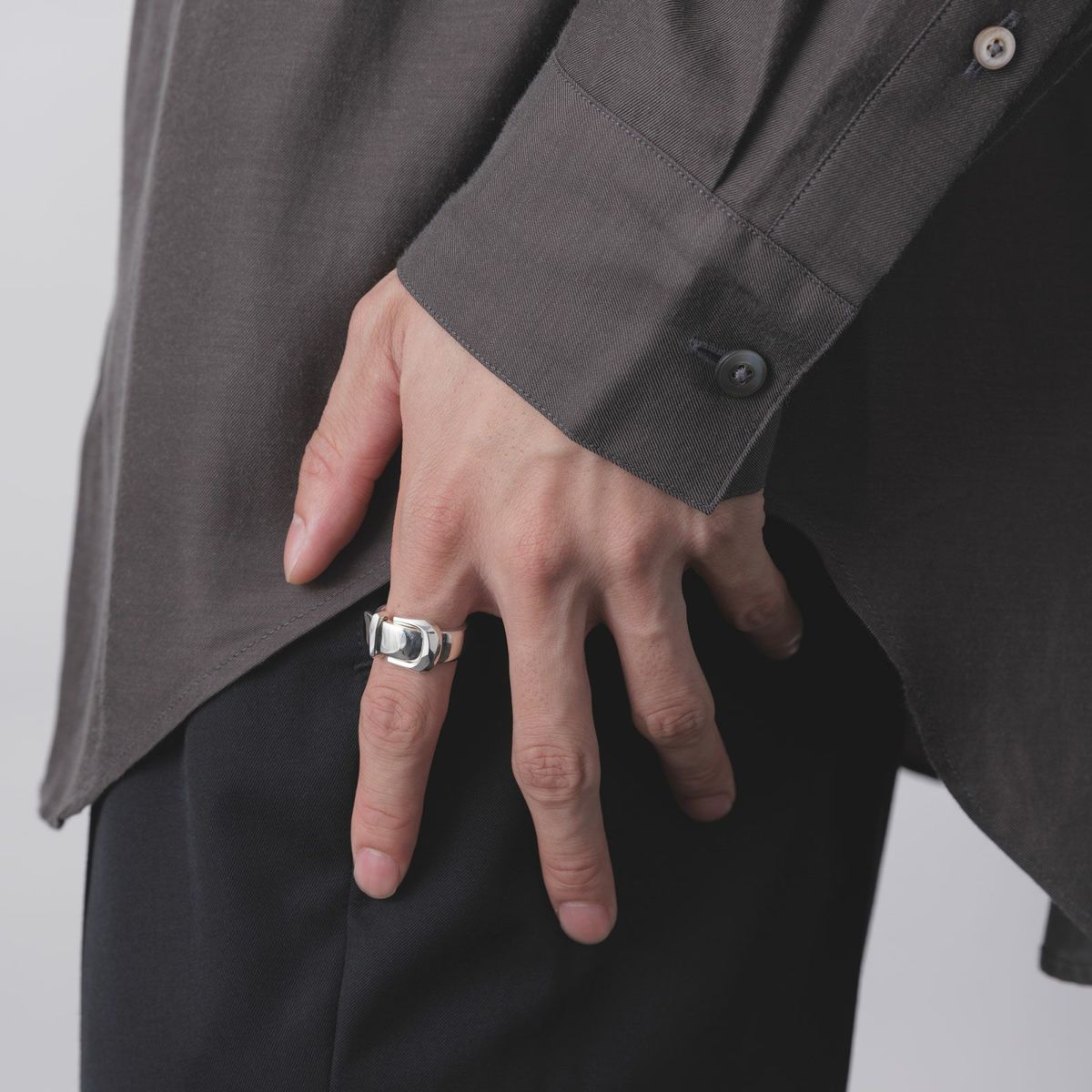 ■スタイル ボリュームがあるデザインなので人差し指や中指に着用がおすすめです。 《注意事項》 ※こちらのアイテムはデザインの仕様上、実際の着用感が表記サイズよりやや小さく感じられることがございます。ワンサイズ上をお選びいただくと、よりゆとりを持ってご着用いただけます。 【essential #2】COLLECTION >商品一覧はこちら