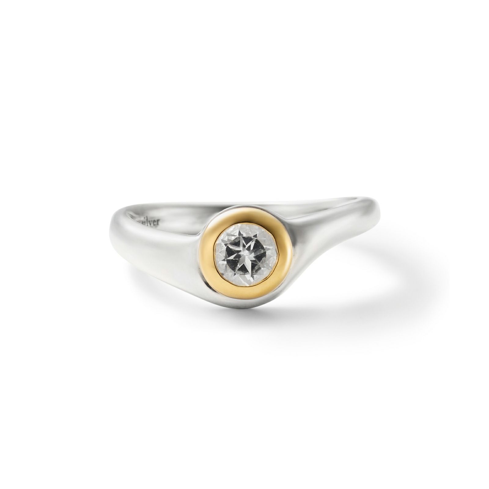 シルバーのクールさとゴールドの温かみが調和した、モダンでジェンダーレスな印象のリングです。