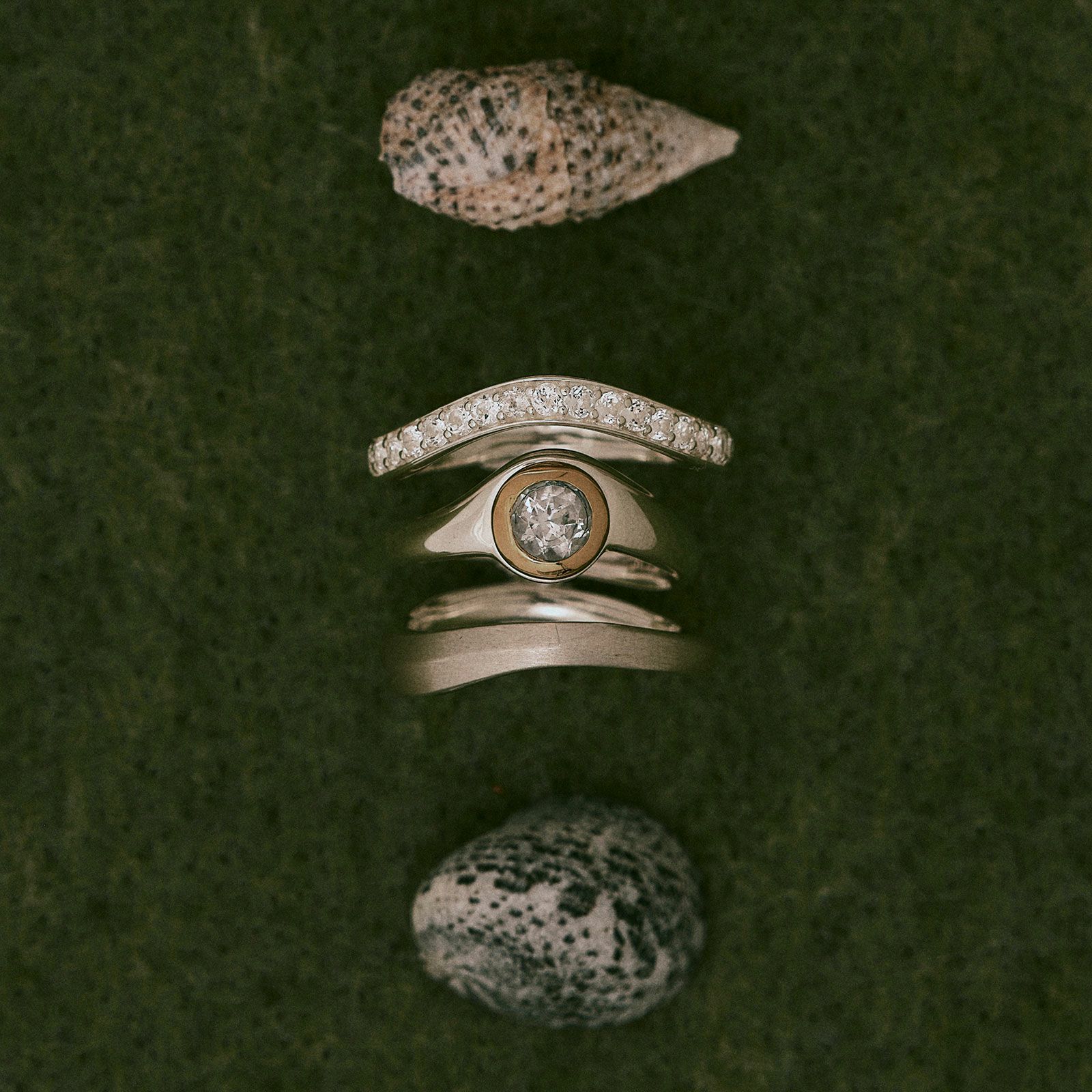 単品での着用の他、Curved Eternity RingやCurved Frost Ringとのレイヤードもおすすめです。