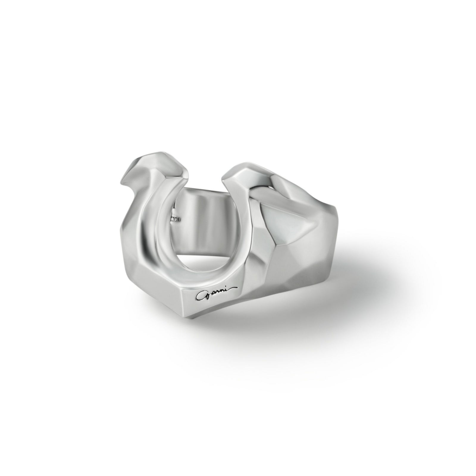幸運を呼び込むと言われている馬蹄(ホースシュー)をモチーフにしたリングです。 全体的に厚みを持たせブランド独自のカッティングを施した存在感のある仕上がりです。 オリジナルアクセサリーケース付き。