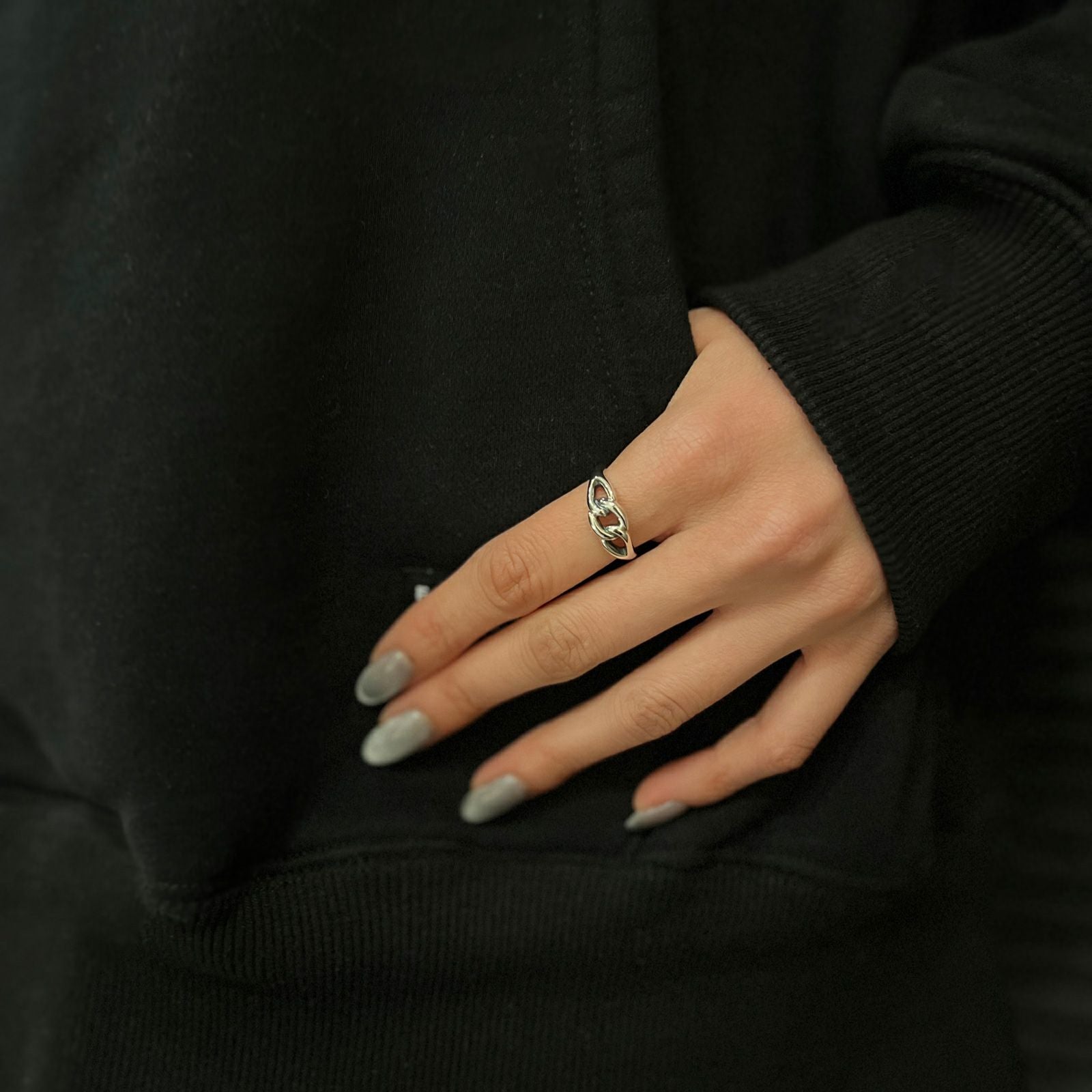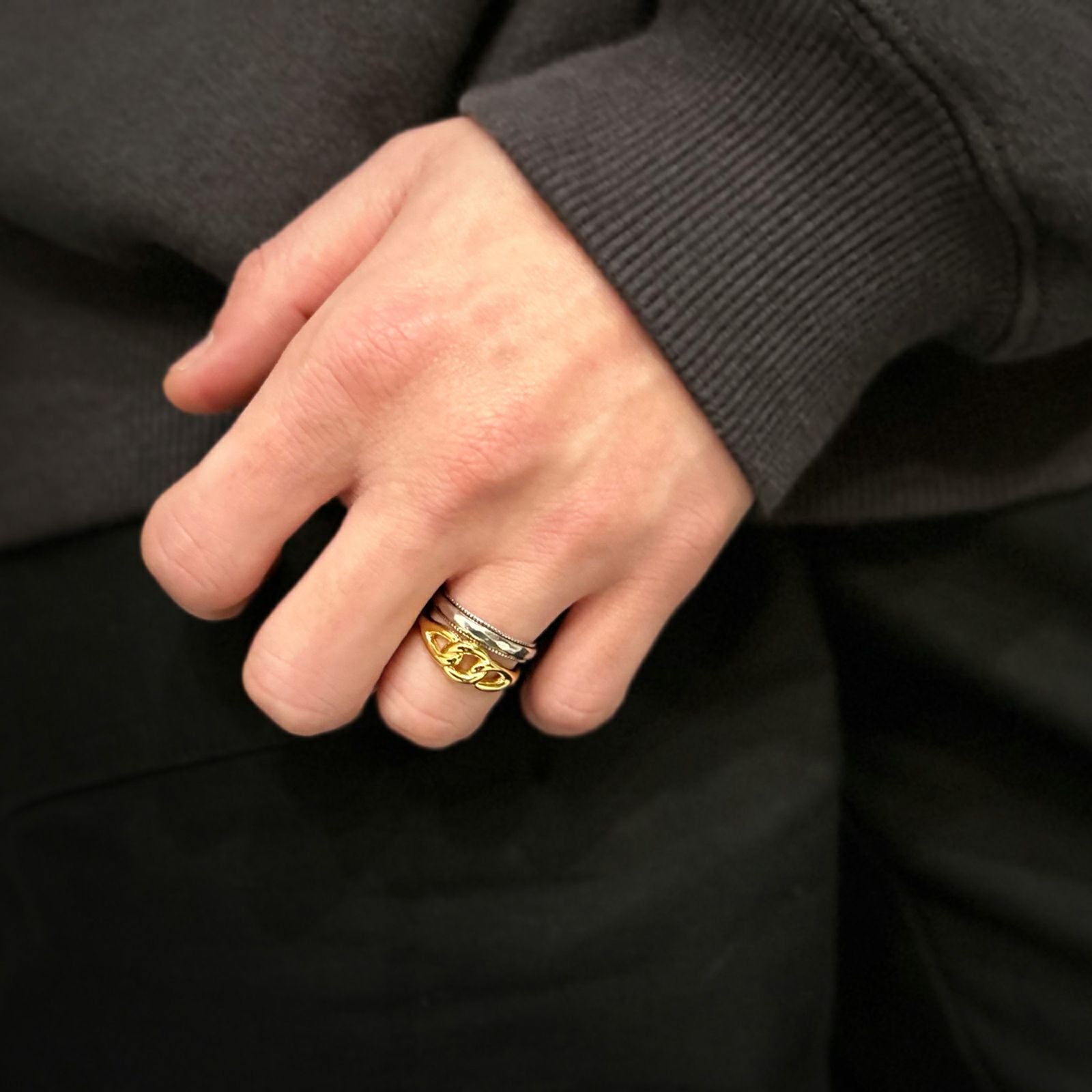 存在感のあるディテールで指先のアクセントになります。