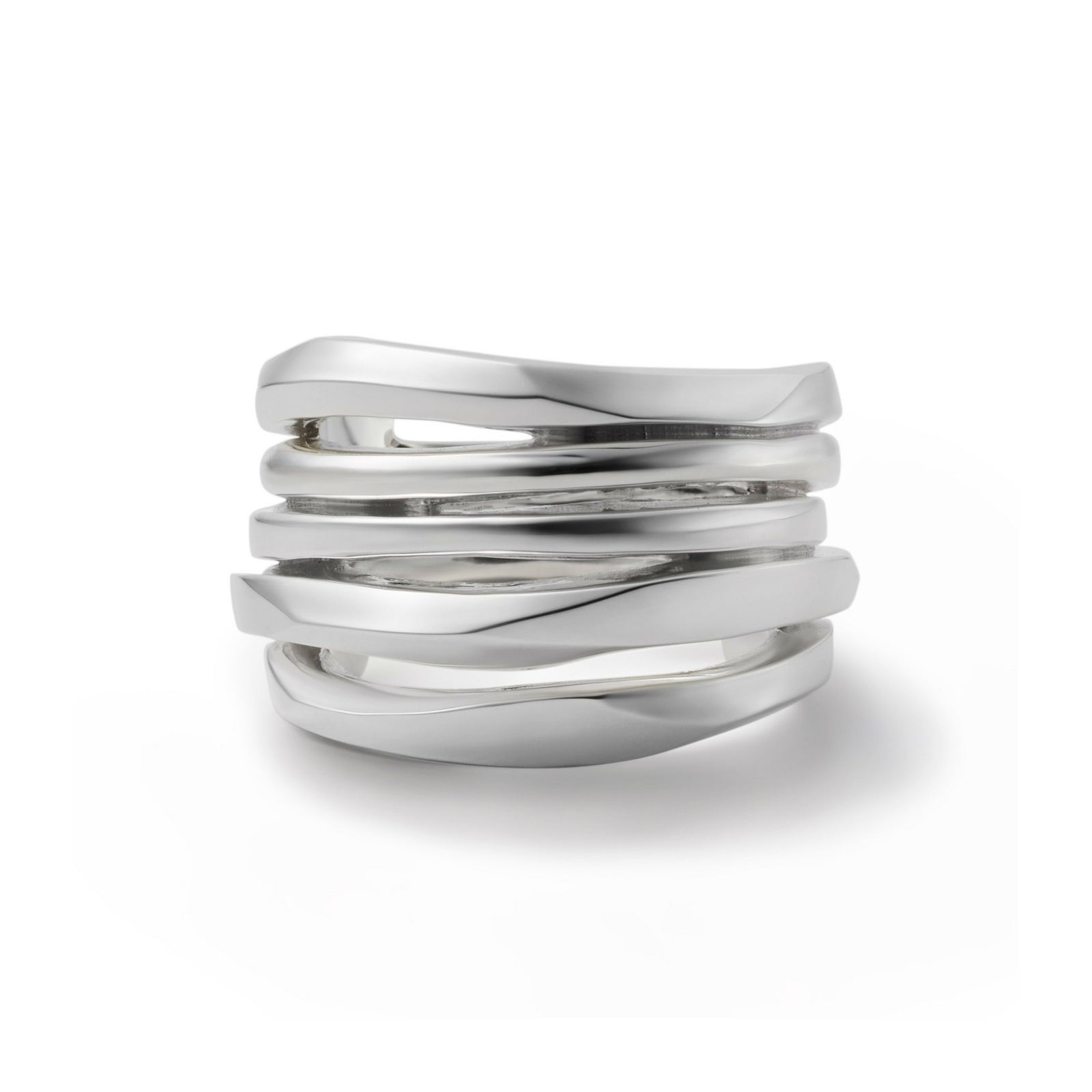 5連に重ねたデザインが特徴的なリングです。