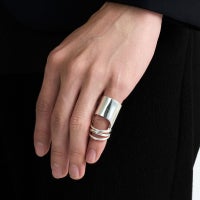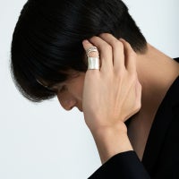 ■デザイン モダンなデザインと厚みを抑えたスマートなシルエットでハードな印象を和らげた、コレクションを象徴するリングです。 指の動きに合わせて可動します。