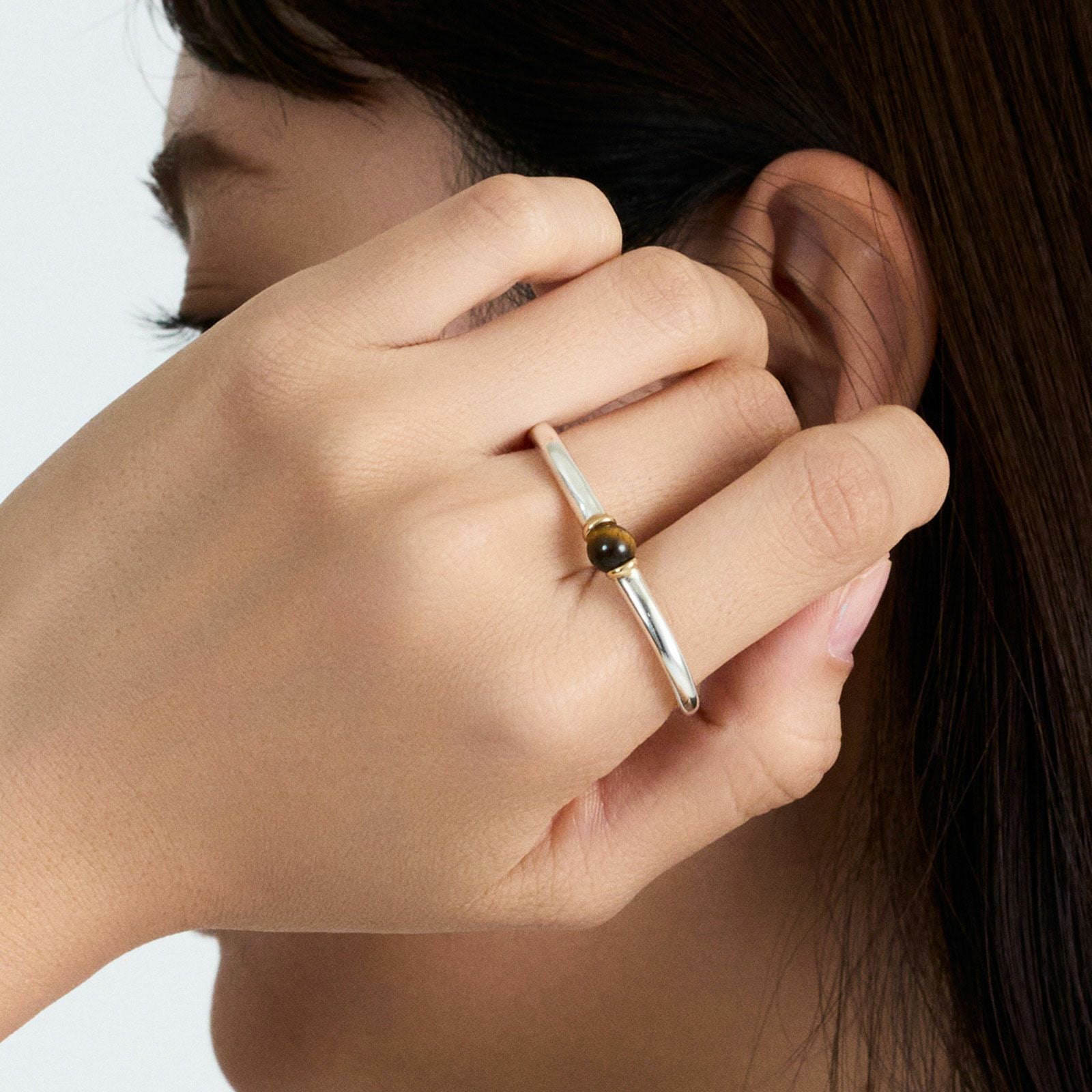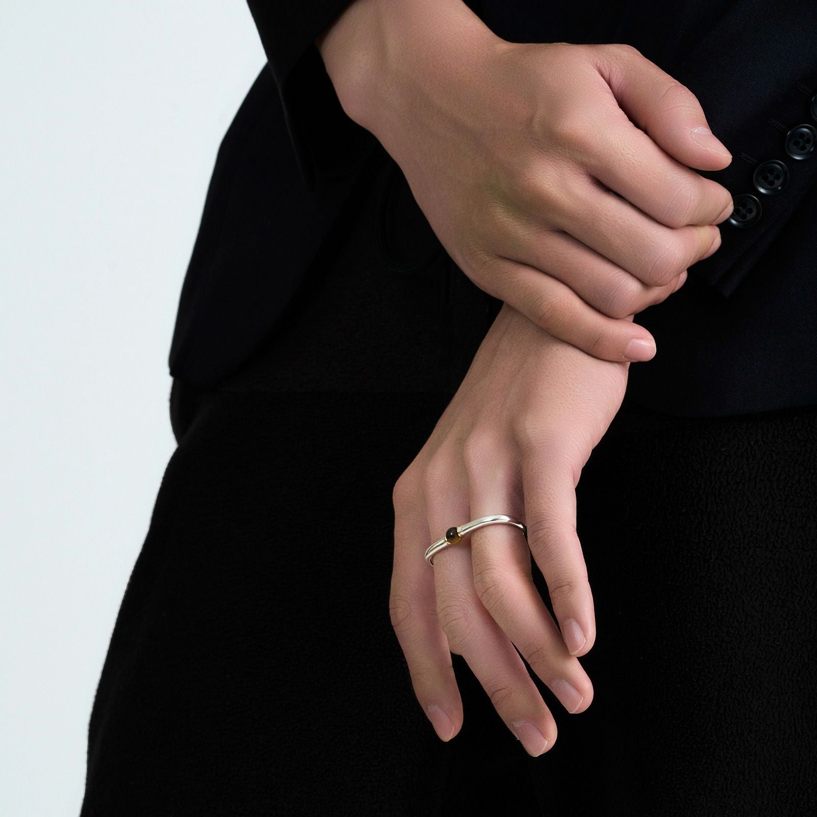 有機的でイレギュラーなフォルムに天然石を組み合わせた2 フィンガーリングです。