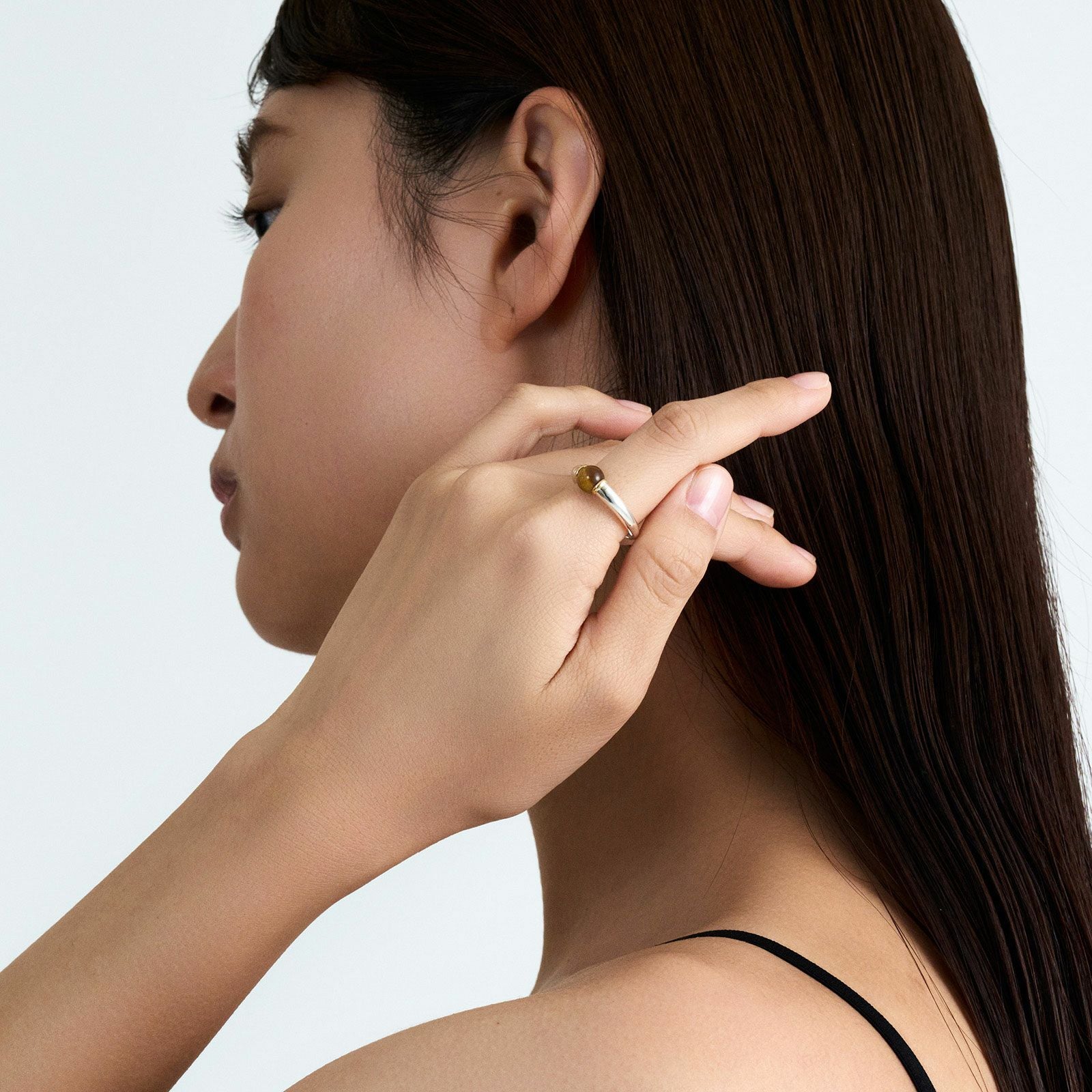 有機的でイレギュラーなフォルムに天然石を組み合わせたリングです。