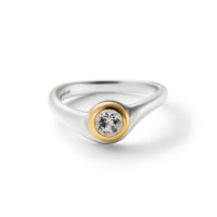 シルバー925 (スターリングシルバー)。天然石 (ホワイトトパーズ)。石を留める爪の部分にはK18 Gold Plated (ゴールドコーティング)をアクセントに施しています。