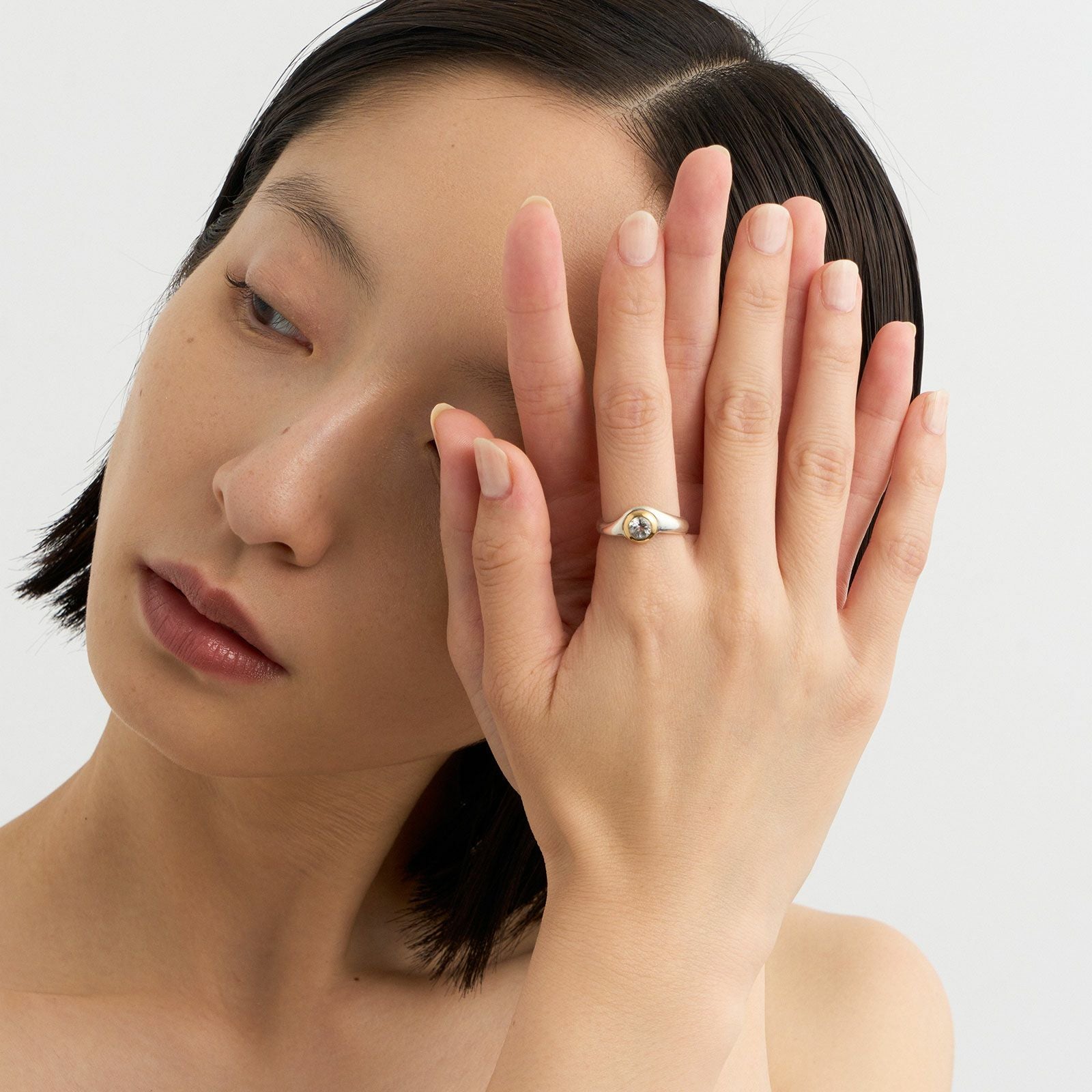 シルバーのクールさとゴールドの温かみが調和した、モダンでジェンダーレスな印象です。